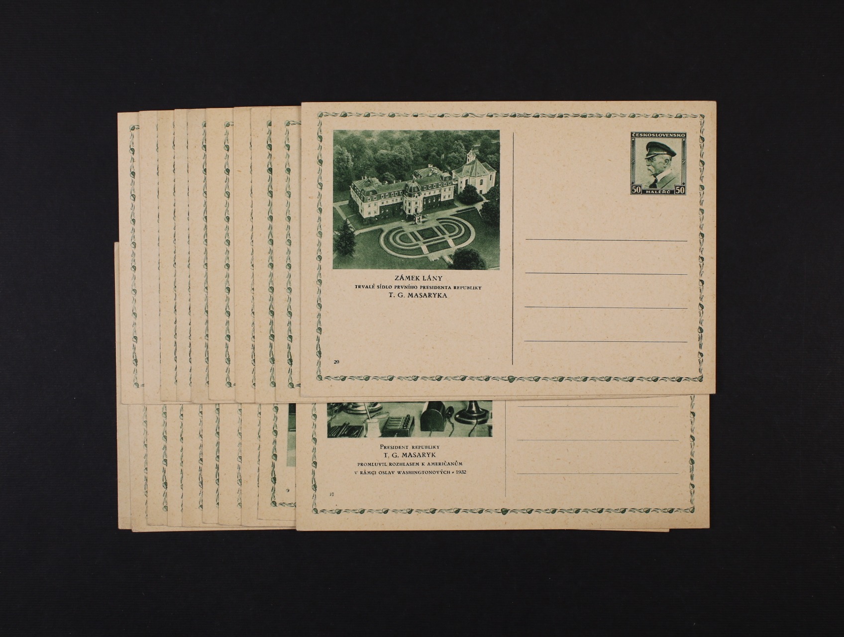 781 CDV č. 60/1-20 obrazové dopisnice TGM, kompl. řada, nepoužité, kat. cena 1400 Kč 900