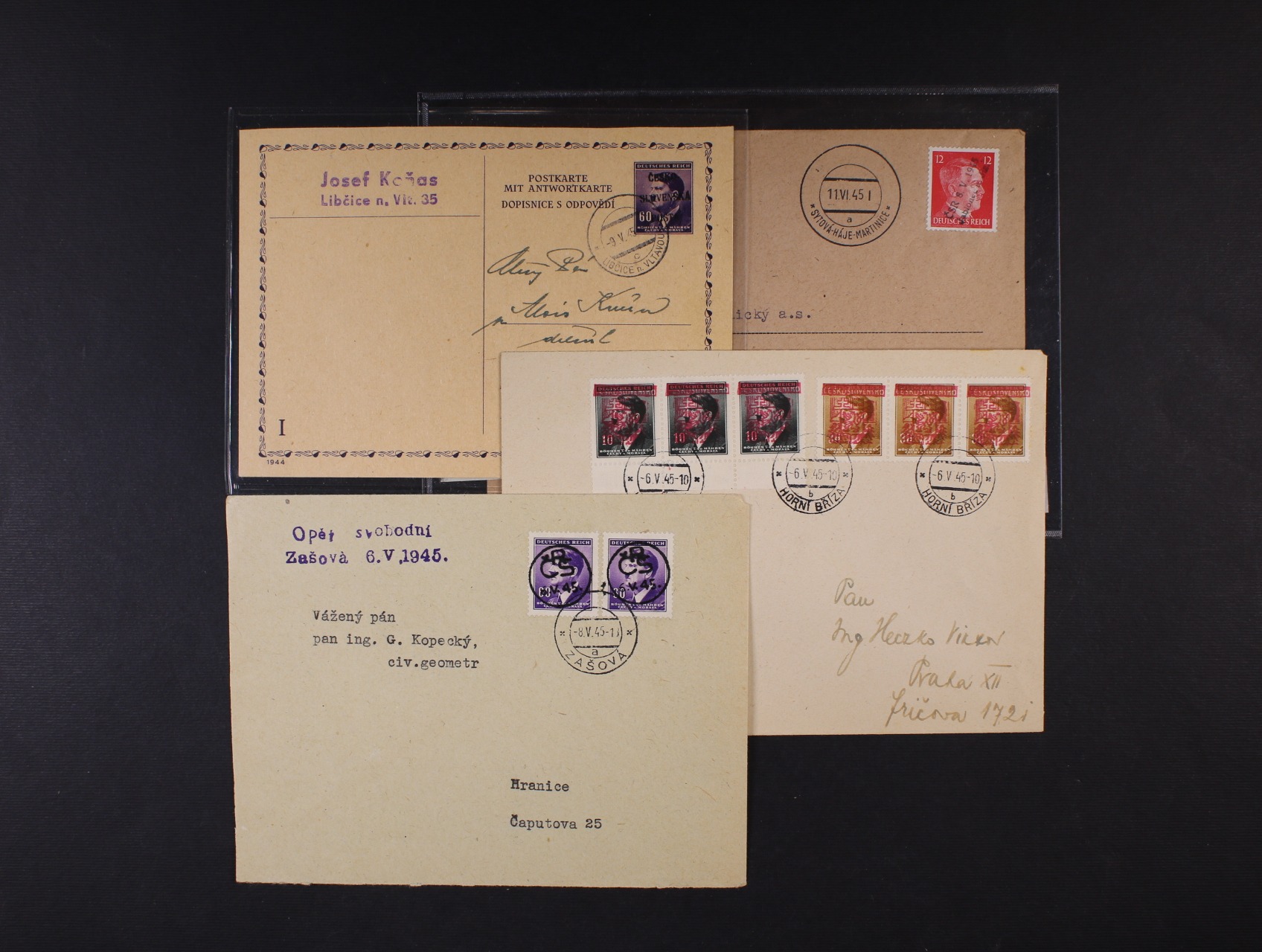 Albania Belgium Bosnia - Herzegovina Postal stationery Postal stationery after 1945 Montenegro The Red cross Czech Republic CR postal stationery CS after 1945 entires CS after 1945 Denmark Postage due and Printed matter Exilové - výstavní aršíky Finland Fiume France Gibraltar Historical Documents and Old Maps Dove Agriculture and science 1920 and 1923 Ministerial perforations and others Specimen Probationary printing Hradčany 1918 entires Hrady, krajiny a města 1926 The Hussite Italy Jubilejní 1928 - 10. výročí ČSR Concentration Camps, Camps Cyprus Legionnaire 1919 Airmail Airmail Lichtenstein Literature Hungary Masaryk 1920 Masaryk 1923 - 1926 Monaco German occupation German occupation zone Germany post abroad German States Germany 1870 - 1945 Germany entires GFR Norway Newspaper Others Others Next from 1929 Next from 1929 entires The Liberated Republic Perfiny Transcarpathia 1918 - 39 Podpisy a autogramy Field post Poland Pošta Československá 1919 Praha - Tatry 1926 Předběžné B. a M. postal stationery Bohemia a Moravia B. a M. entires B. a M. Field post Protectorate stamps used after 1945 téte-béche Provizorní razítka po r.1945 Rakousko - Lombardsko Benátsko Austria post in Levante Austria prestamp period Austria from 1850 to 1918 Austria from 1850 to 1918, entires Austria Postal stationery Austria republic 1918 - 45 Austria republic from 1945 Austria seapost Austria field post Austria postal form Greece Revolution overprints 1918 Revolution overprints 1945 Romania Russia and USSR Various Collections Scout issue Slovak Republic SR postal stationery Slovakia 1939 - 45 Slovakia stationery Slovakia entires SO 1920 Souběžné Spain Sudetenland Switzerland Vatican Great Britain OVERSEAS Zeppelin and Catapult Mails