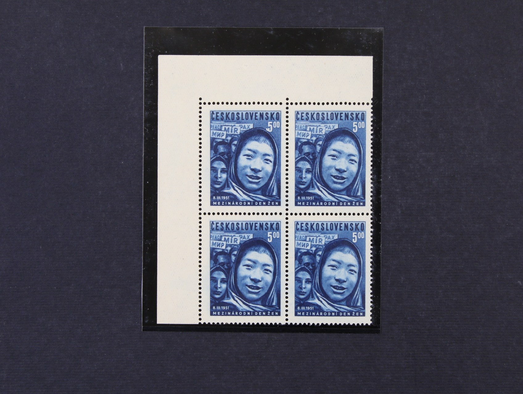 zn. č. 580 MDŽ - levý horní roh. čtyřblok s DV 1/1 bílá skvrna v číslici 5 na ZP 1
