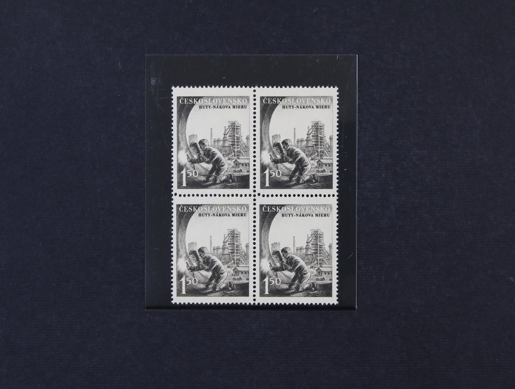 zn. č. 633 4. výročí Února ve čtyřbloku s VV poskočený první perf. otvor zleva na obou zn. ve střední perforaci