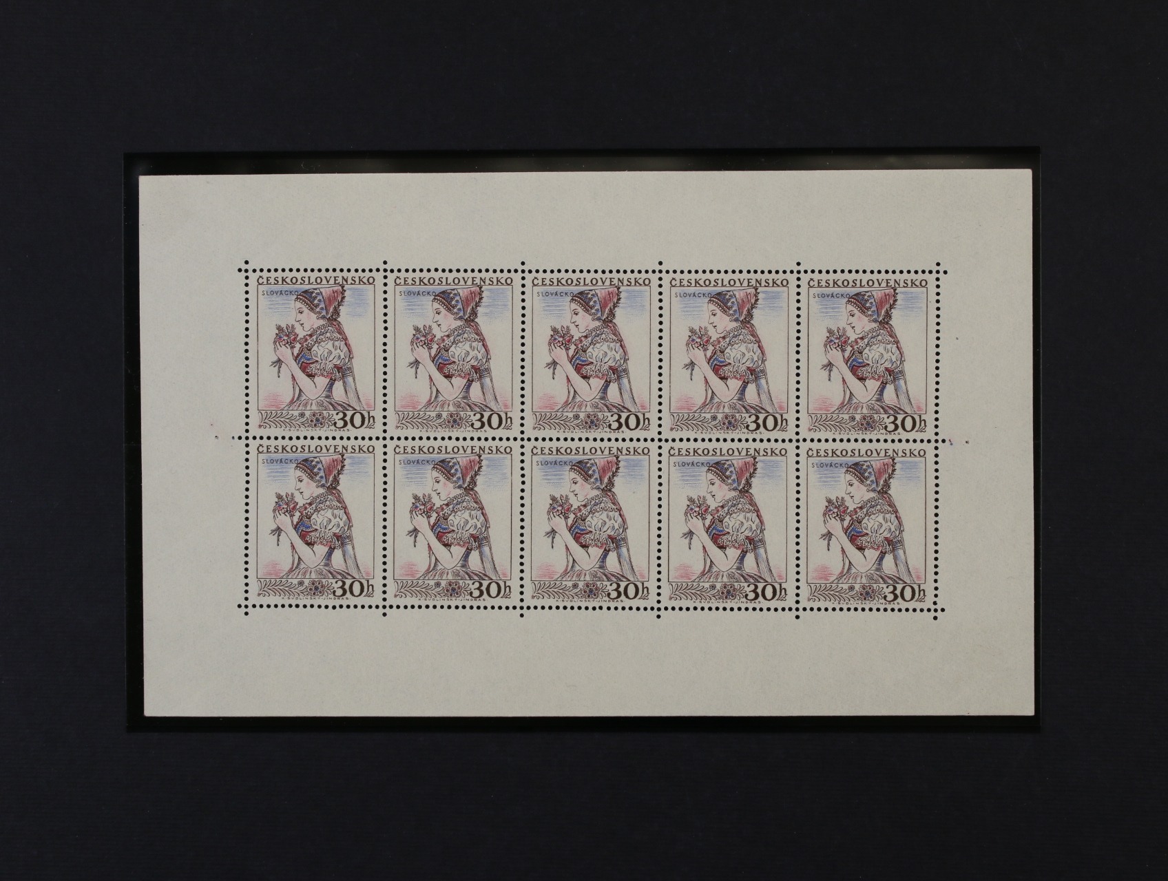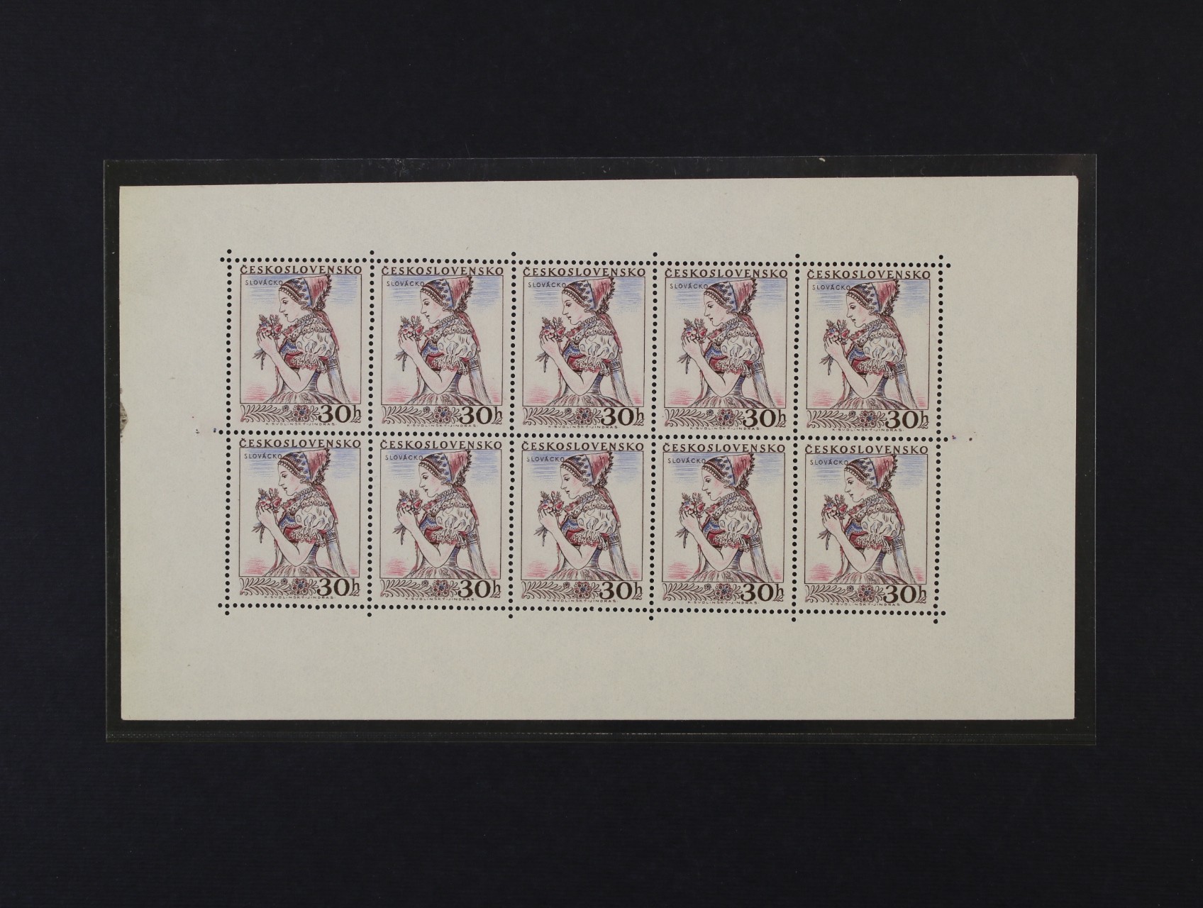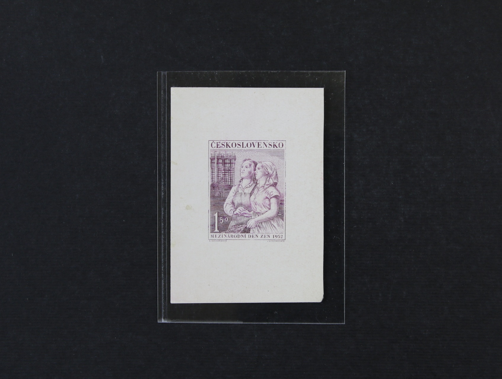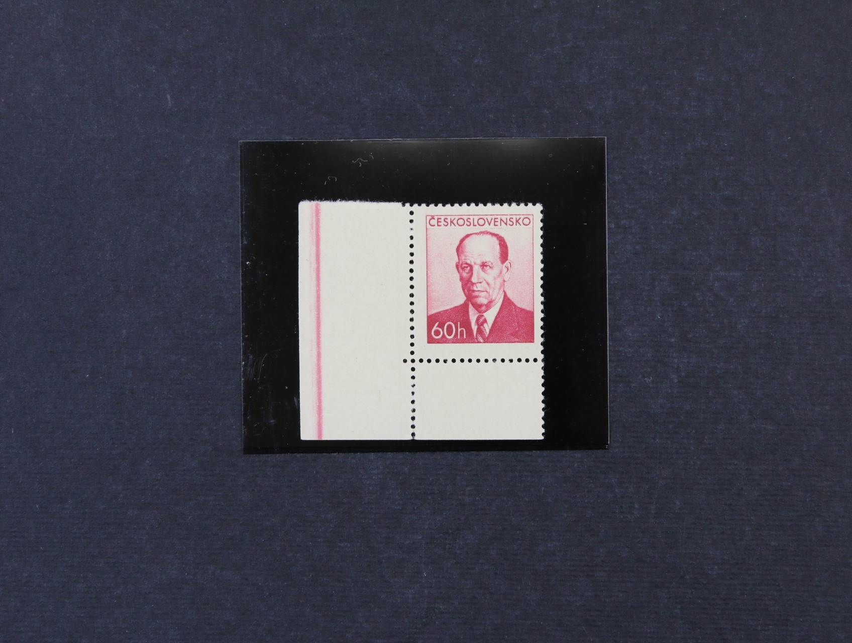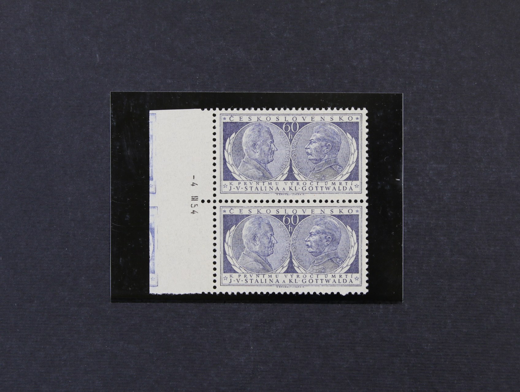 zn. č. 773 ve svislé dvoupásce s levým okrajem a otiskem molety a datem tisku 4.III.54, kat. cena 1000 Kč