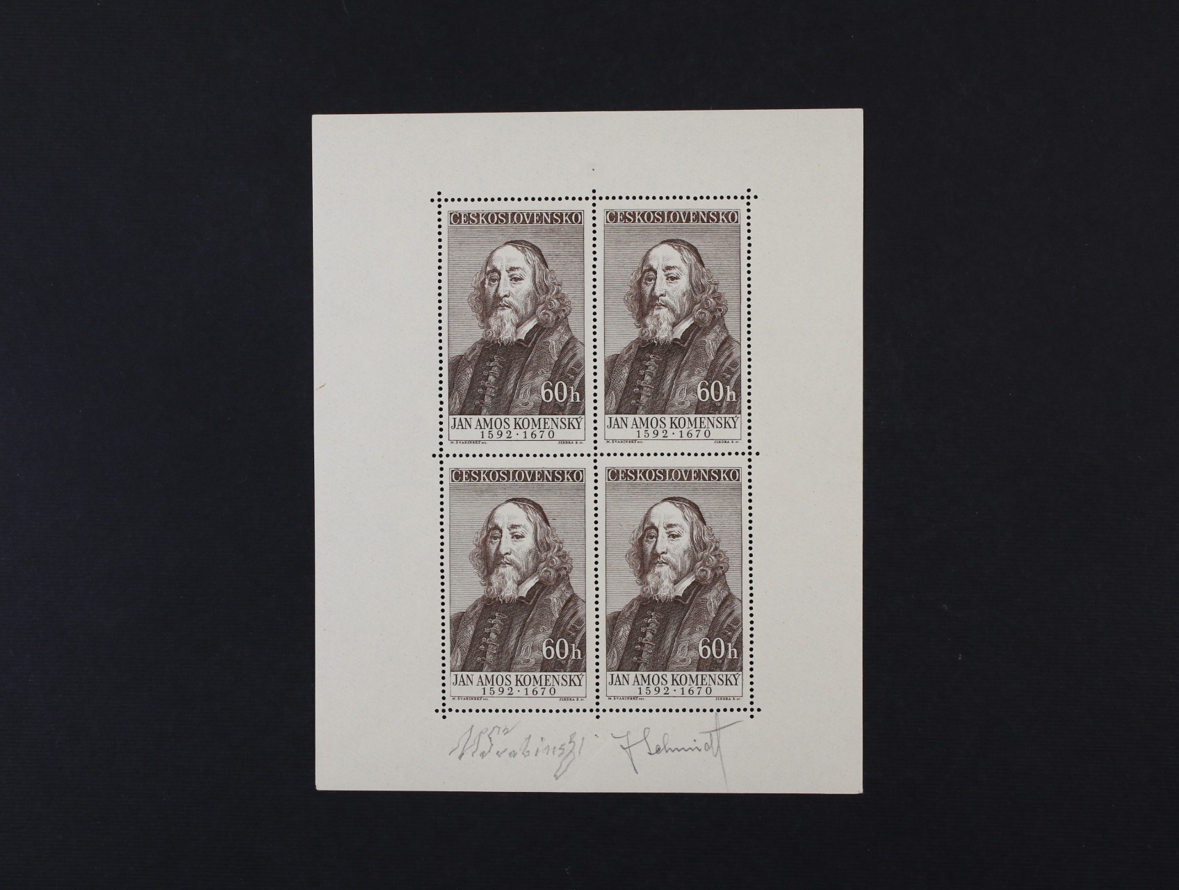 zn. č. PL930 J.A. Komenský, V. typ, s podpisy autorů M. Švabinský a J. Schmidt, nepatrná dvl na ZP4