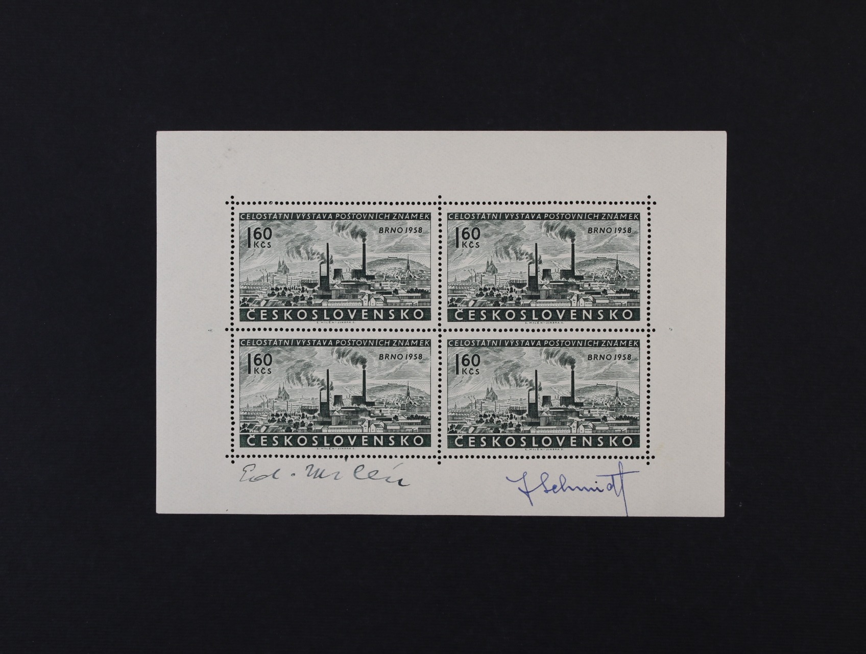 zn. č. PL1017 Brno 1958 s podpisy autorů E. Milén a J. Schmidt, deska D