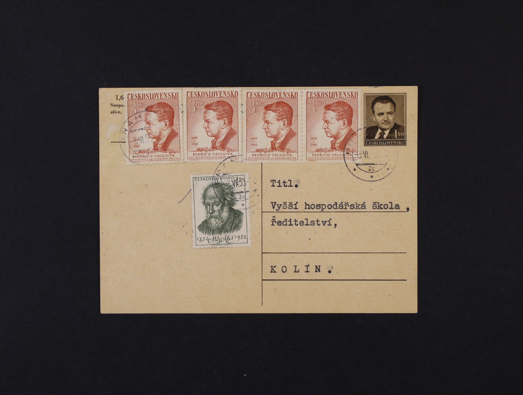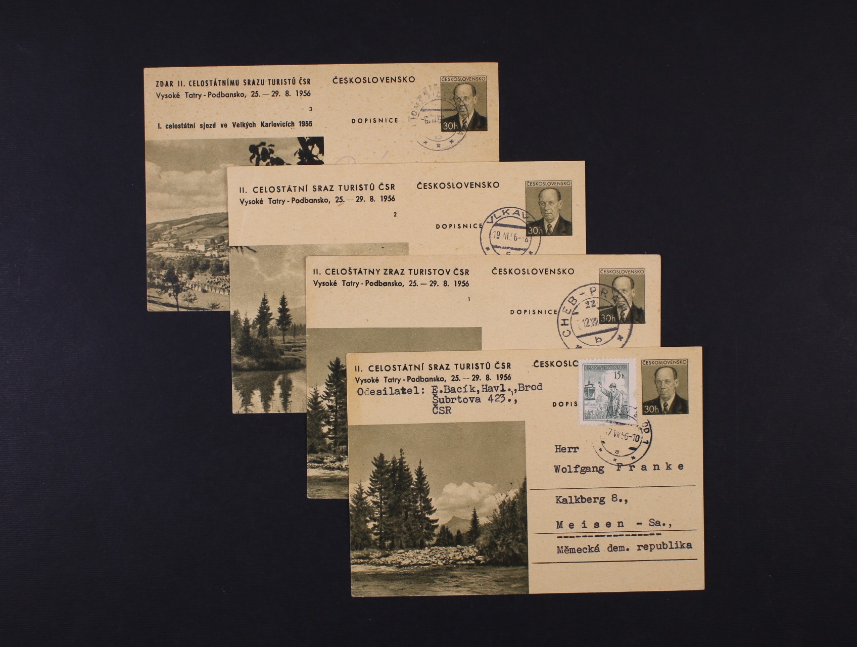 Albania Belgium Bosnia - Herzegovina Postal stationery Postal stationery after 1945 Montenegro The Red cross Czech Republic CR postal stationery CS after 1945 entires CS after 1945 Denmark Postage due and Printed matter Exilové - výstavní aršíky Finland Fiume France Gibraltar Historical Documents and Old Maps Dove Agriculture and science 1920 and 1923 Ministerial perforations and others Specimen Probationary printing Hradčany 1918 entires Hrady, krajiny a města 1926 The Hussite Italy Jubilejní 1928 - 10. výročí ČSR Concentration Camps, Camps Cyprus Legionnaire 1919 Airmail Airmail Lichtenstein Literature Hungary Masaryk 1920 Masaryk 1923 - 1926 Monaco German occupation German occupation zone Germany post abroad German States Germany 1870 - 1945 Germany entires GFR Norway Newspaper Others Others Next from 1929 Next from 1929 entires The Liberated Republic Perfiny Transcarpathia 1918 - 39 Podpisy a autogramy Field post Poland Pošta Československá 1919 Praha - Tatry 1926 Předběžné B. a M. postal stationery Bohemia a Moravia B. a M. entires B. a M. Field post Protectorate stamps used after 1945 téte-béche Provizorní razítka po r.1945 Rakousko - Lombardsko Benátsko Austria post in Levante Austria prestamp period Austria from 1850 to 1918 Austria from 1850 to 1918, entires Austria Postal stationery Austria republic 1918 - 45 Austria republic from 1945 Austria seapost Austria field post Austria postal form Greece Revolution overprints 1918 Revolution overprints 1945 Romania Russia and USSR Various Collections Scout issue Slovak Republic SR postal stationery Slovakia 1939 - 45 Slovakia stationery Slovakia entires SO 1920 Souběžné Spain Sudetenland Switzerland Vatican Great Britain OVERSEAS Zeppelin and Catapult Mails