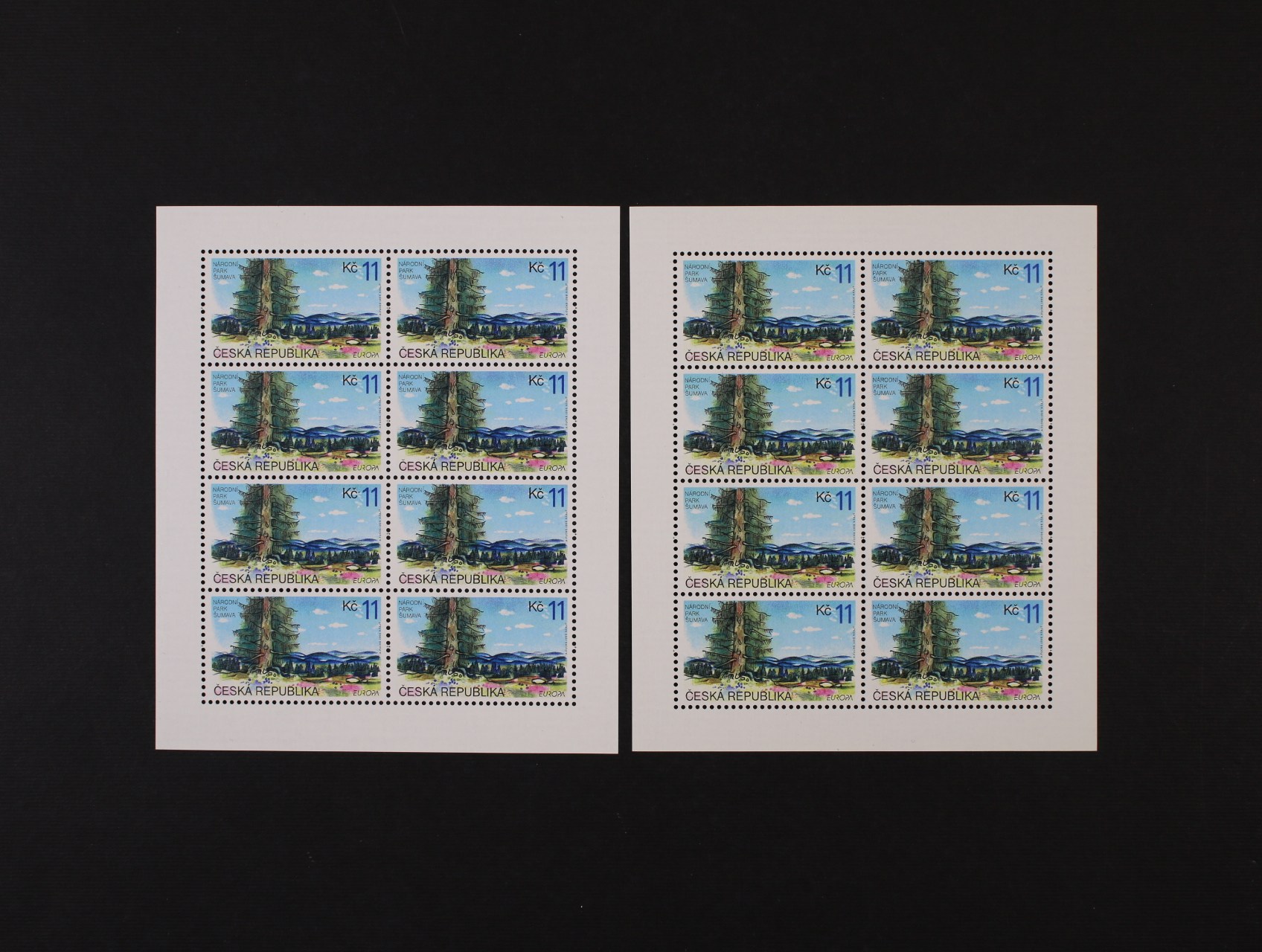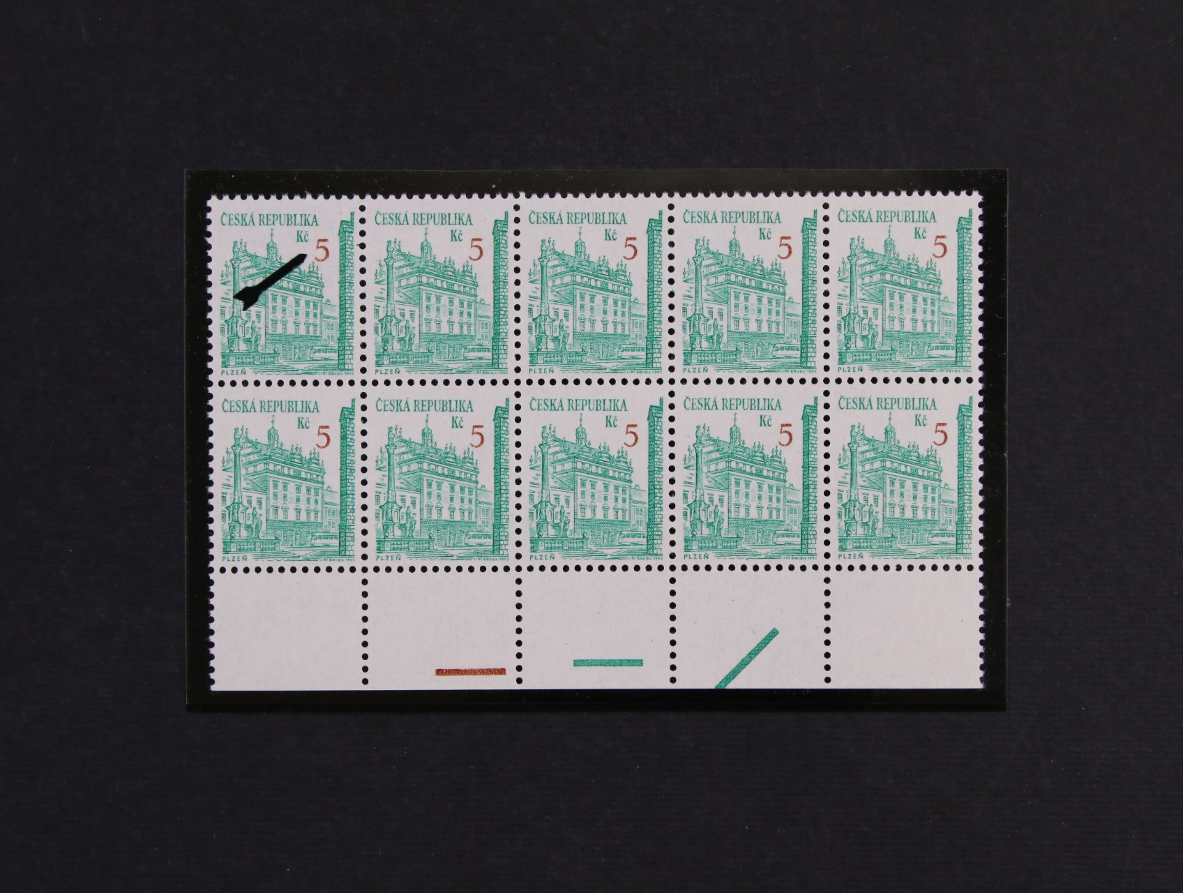 zn. č. 15 v 10ti-bloku se spodním okrajem s VV výrazný posun hodnotové číslice směrem dolů, kat. cena 1200 Kč