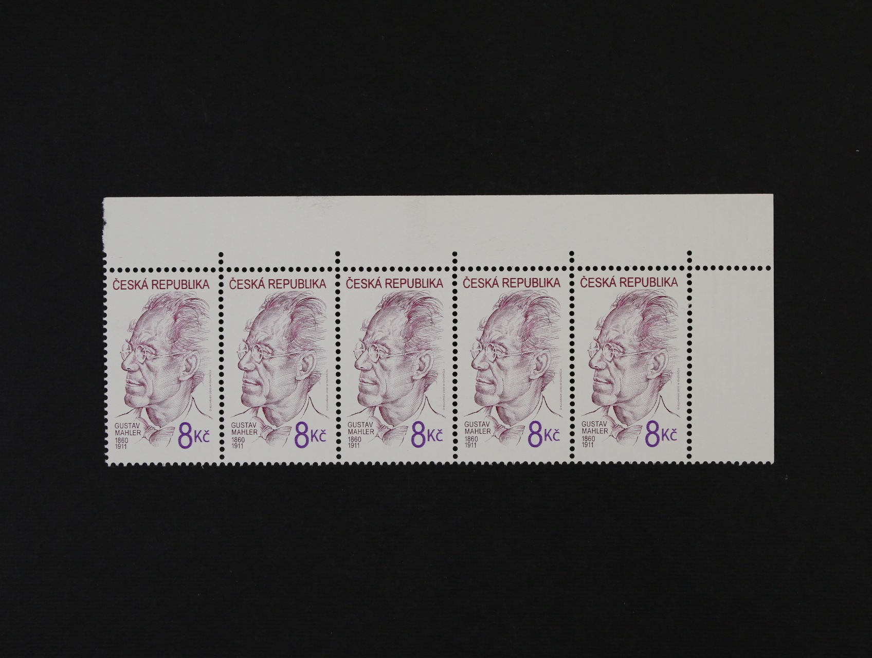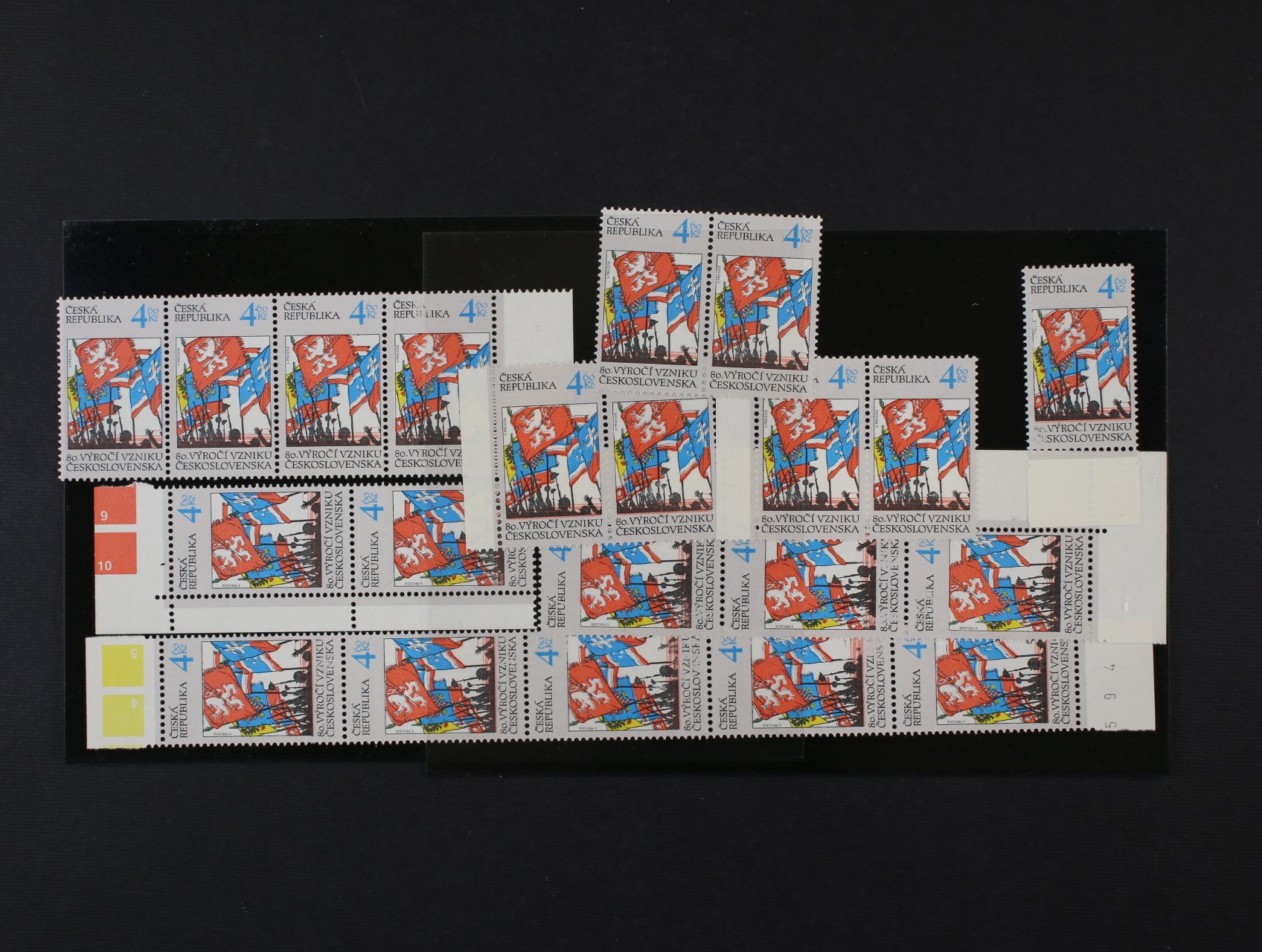 zn. č. 195, soubor 8ks dvou a více pásek a krajových kusů s částečnými vynechávkami tisku černou barvou, zajímavé