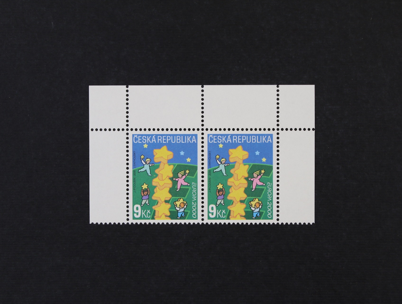 zn. č. 88 "25 let SOS dětských vesniček" v nominál. hodnotě 3 Kč - stříhané čtyřzn. meziarší vodorovné, uprostřed svisle přeložené, zatím známo jen 10 ks, atest Arbeit