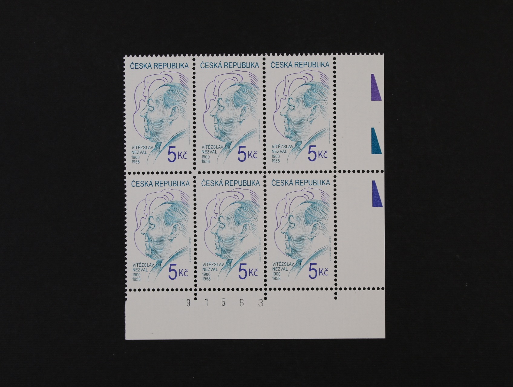zn. č. 63 ve čtyřbloku s levým okrajem a DV bílý kroužek mezi hvězdami na ZP 21 (jen na části nákladu)
