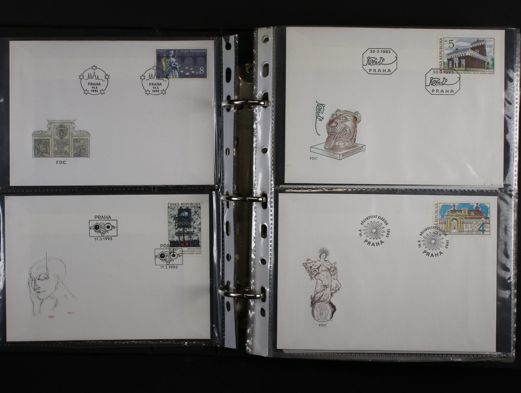 1325 ČR - sbírka FDC obálek z let 1993-2002, kompletní ročníky, velmi pěkný stav, uloženo ve třech A5 zásobnícich na půlených listech, kat. cena Pofis 7900kč 2000