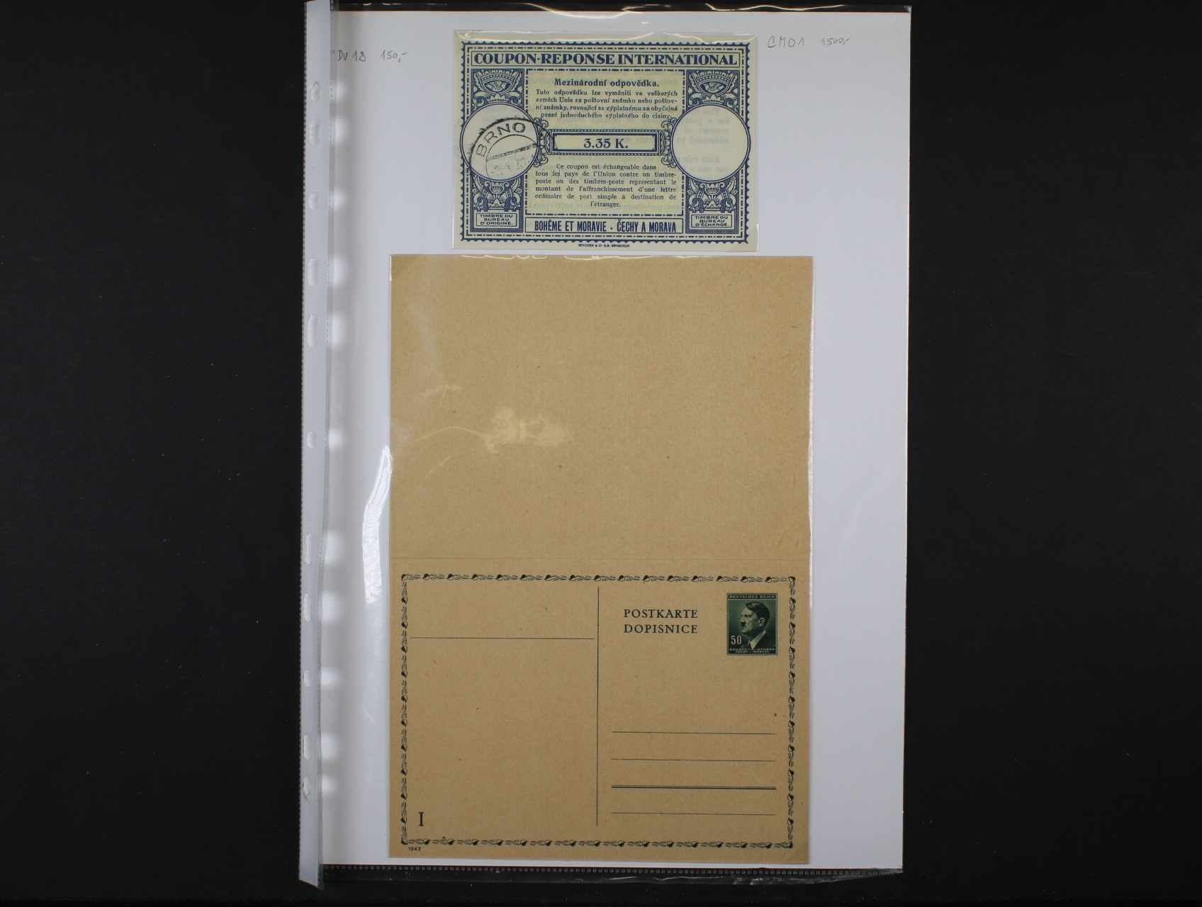 1331 Protektorát - menší sbírka celin obsahující CDV č. 11 - CDV 18 v různých variantách, CPL 1, CZL 4x, CZL 4y, CMO 1, uloženo na listech v kat. ceně cca 2800 Kč 600