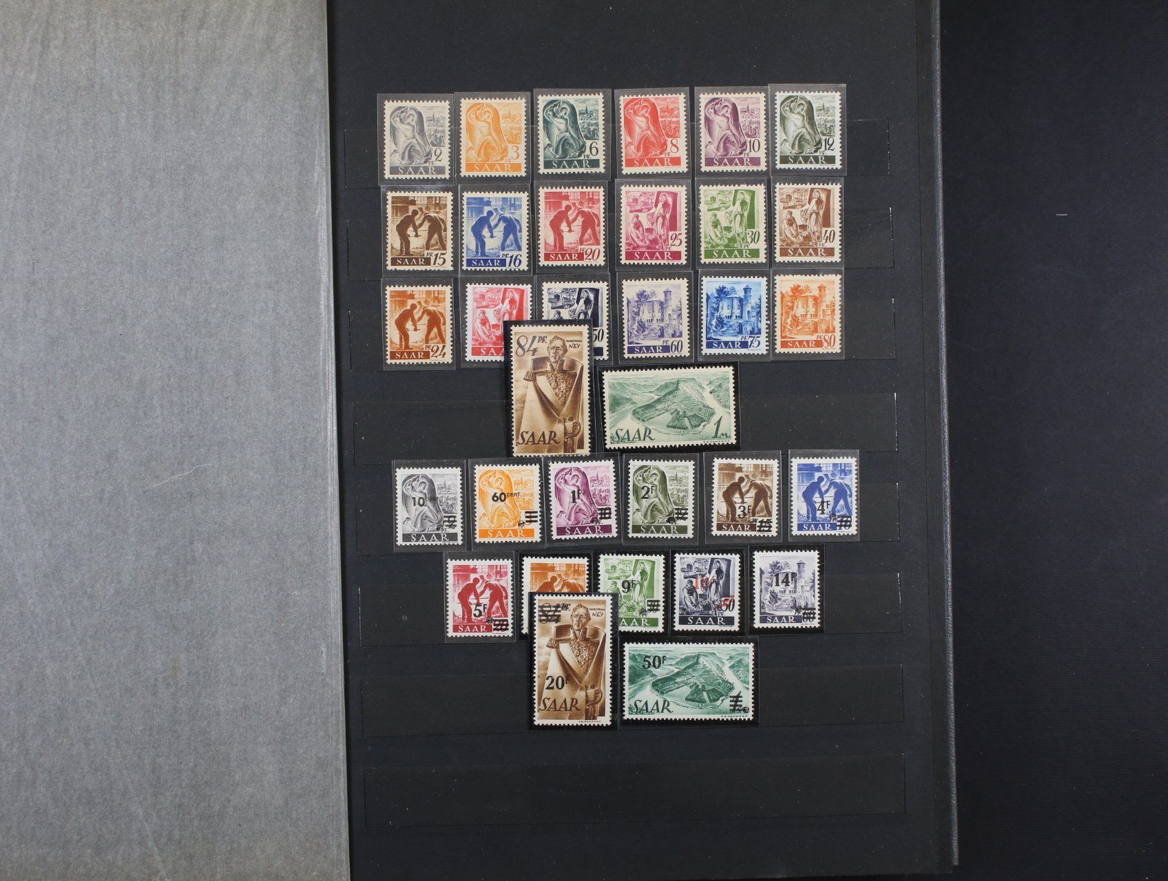 1338 Sársko - nekompletní sbírka svěžích zn. z let 1947 - 1959, obsahuje mj. zn. Mi. č. 293 - 5, 314 - 16, 380 - 99, 409 - 428, kat. cena 350 EUR, uloženo v šedém zásobníku A4 900