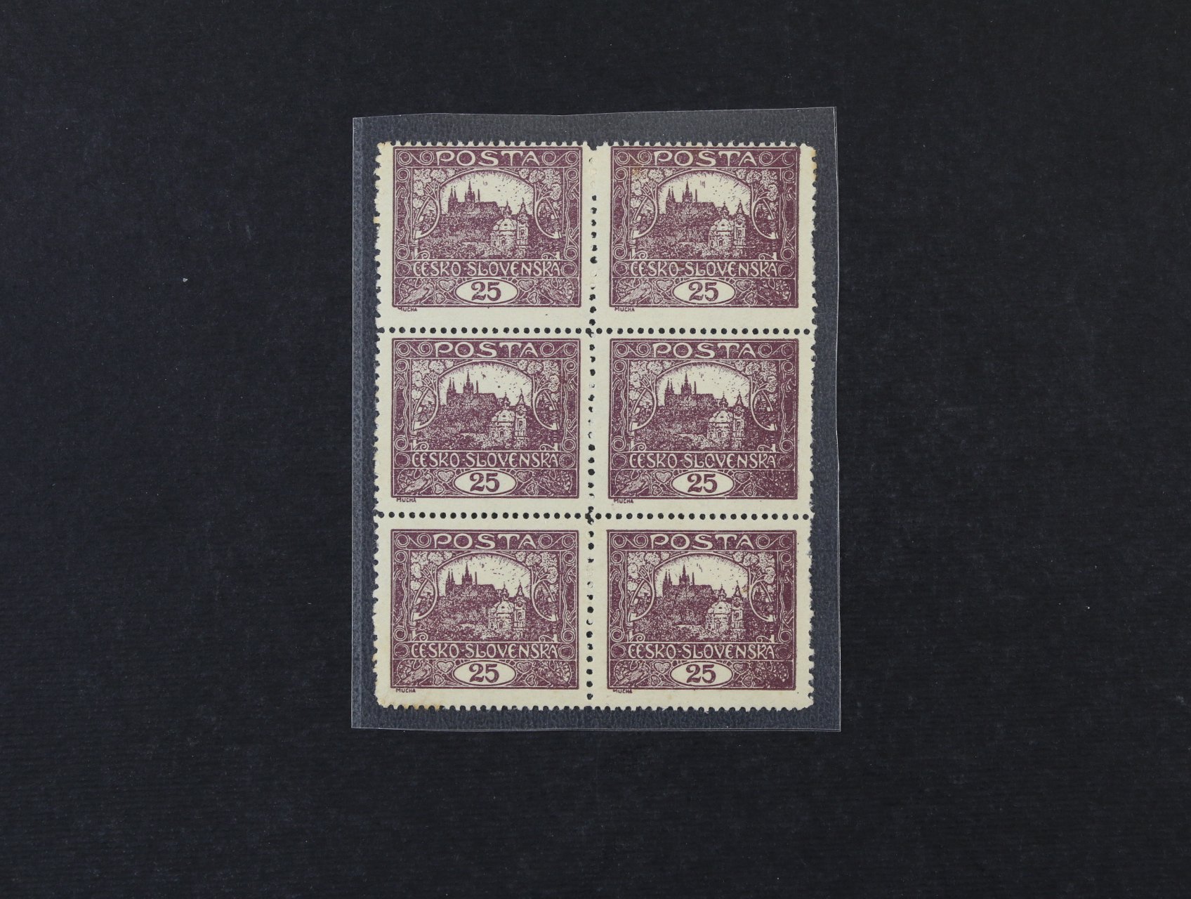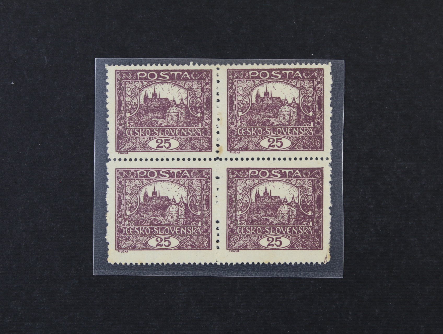 zn. č. 11 F STs ve čtyřbloku, TD 2, typ I na ZP 10, na pravé horní zn. ve spodním rohu nahnědlá skvrnka, zk. Vrba, kat. cena 8000 Kč