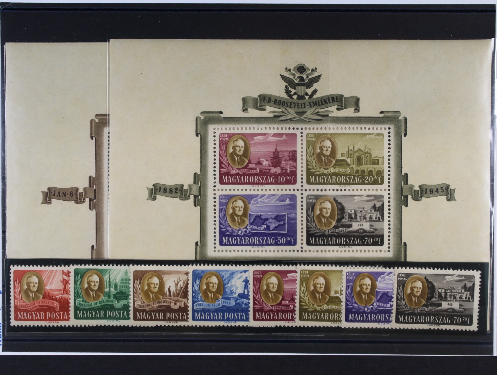 privátní vydání - novotisk zn. Mi. č. 8 - 13 k 50tému výročí vydání prvních zn., vše krajové kusy s původním lepem