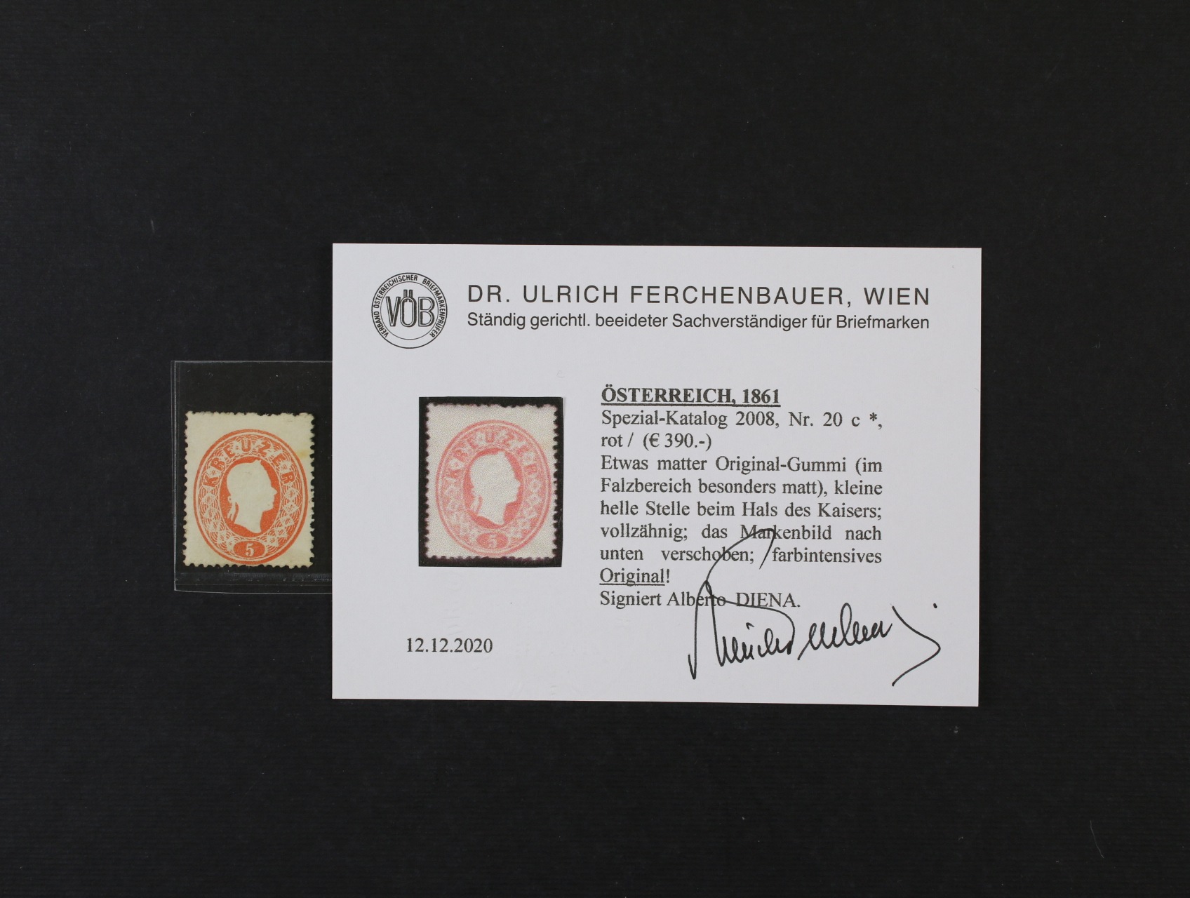 zn. Fe. č. 20c, orig. lep, svěží barva, zk. Albert Diena, atest Ferchenbauer, 390 EUR