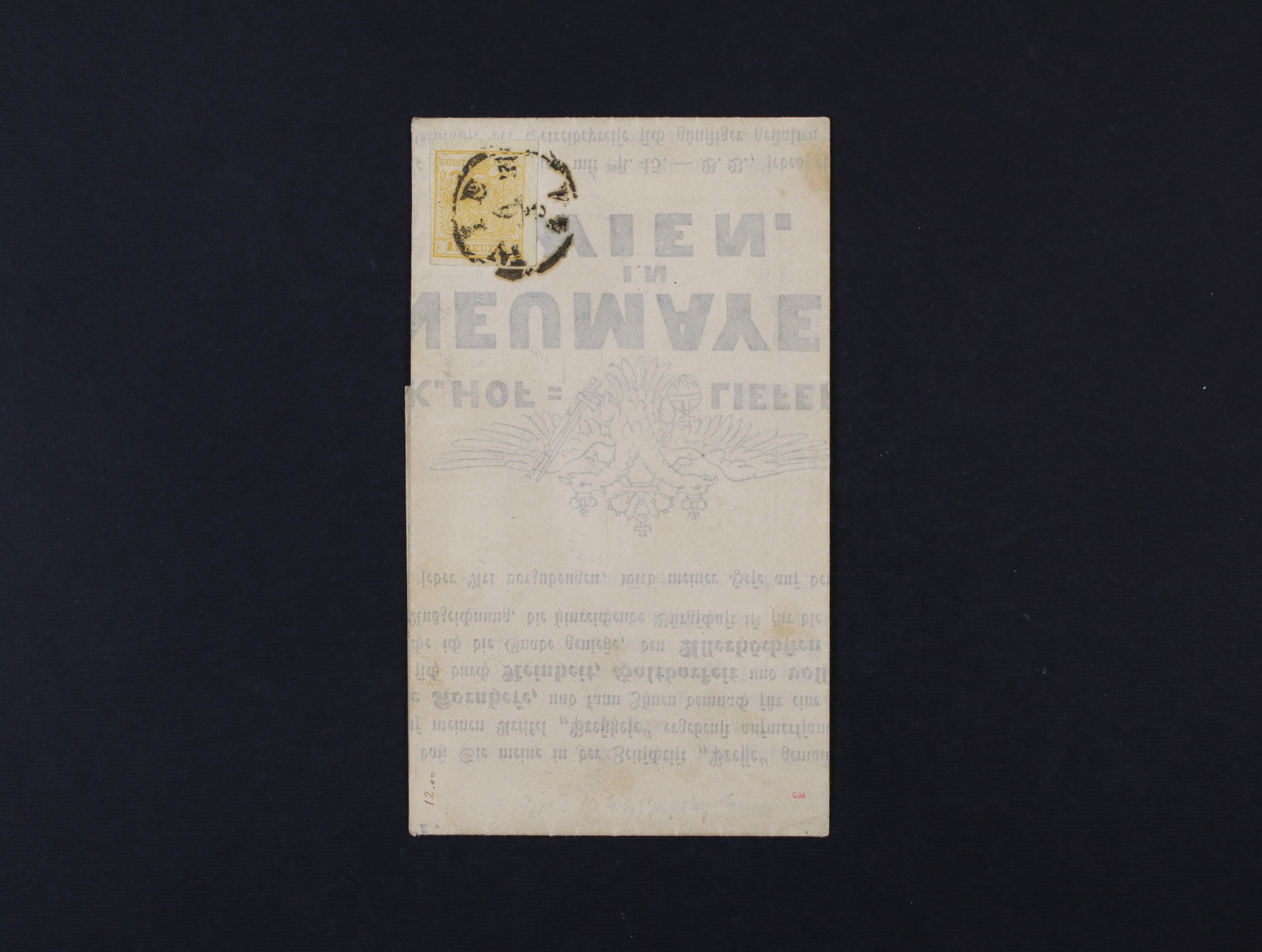 skl. tiskopis z r. 1854 frank. zn. Fe. č. 1 HP žlutoranžová s pod. raz. WIEN 6.3.