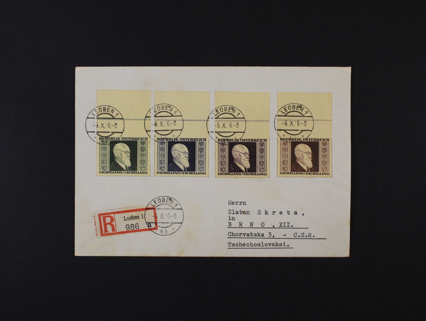 R-dopis do Brna frank. zn. Mi. č. 772 B - 775 B s horními okraji, pod. raz. LEOBEN 1 5.10.46, 1800 EUR