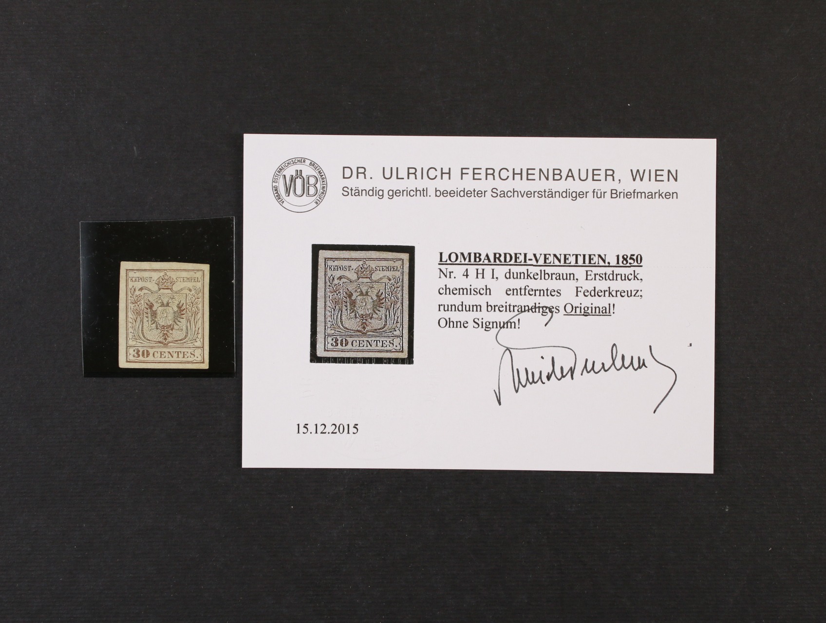 zn. Fe. č. 4 H, typ I, dunklbraun, Erstdruck s chemicky odstraněným škrtem pera, malý atest Ferchenbauer