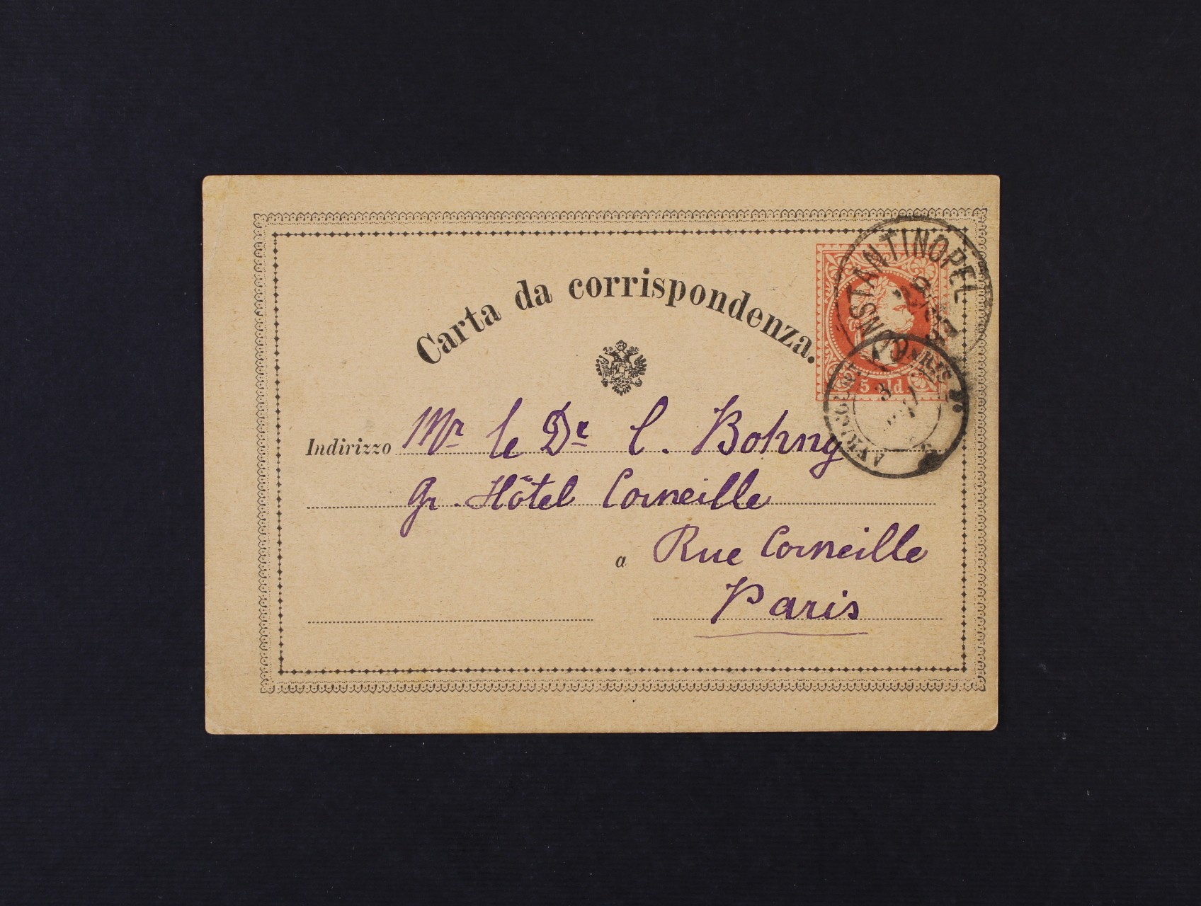KL 5sld do Paříže s pod. raz. CONSTANTINOPEL 29.4.81, přích. raz. PARIS 29.4.81, lux. kvalita