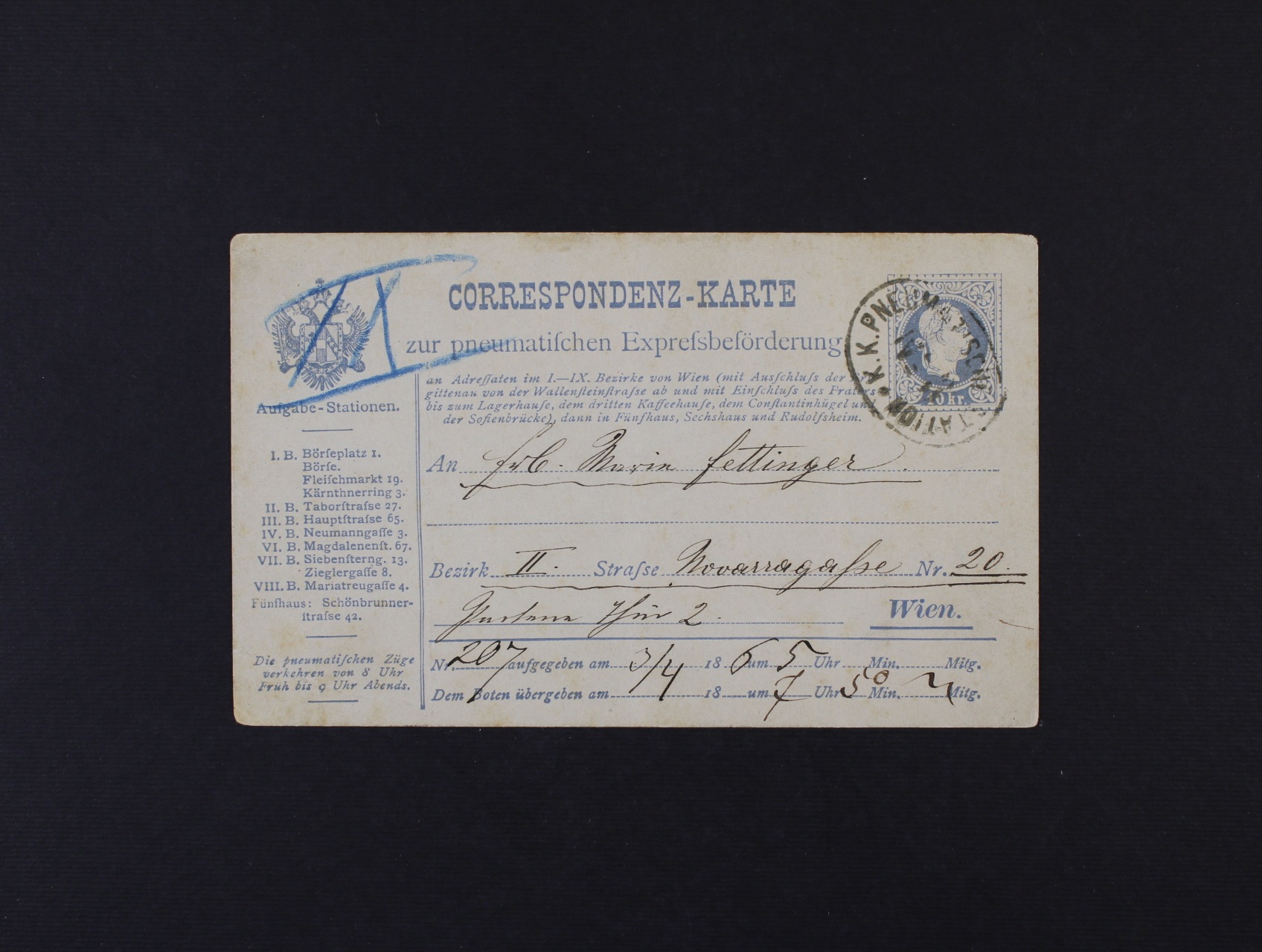 potrubní pošta Mi. RP 3, pod. oválné raz. K.K. PNEUMATISCHENSTATION No. II., dobrá kvalita