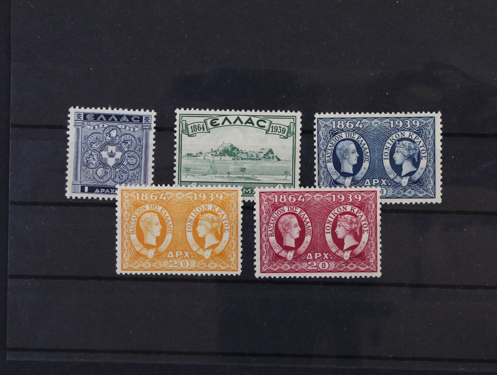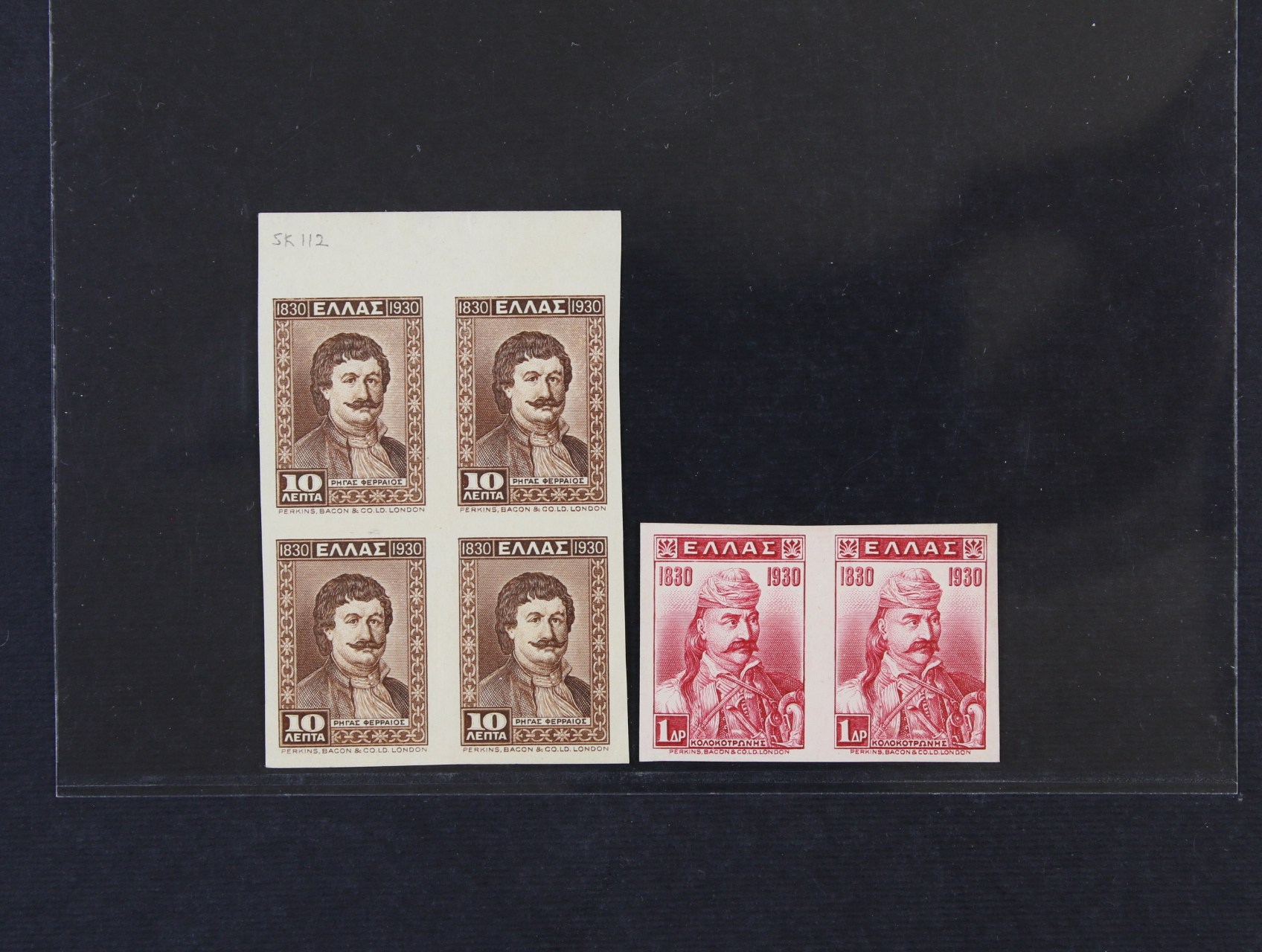 1624 zn. Mi. č. 327, 332; 100 let nezávislosti ve čtyřbloku s horním okrajem 10L a 2-páska 1Dr; NEVYDANÉ, na známkovém papíru s lepem, v definitivních barvách; luxusní a vzácné, kat. Karamitsos 1.460 EUR 2800