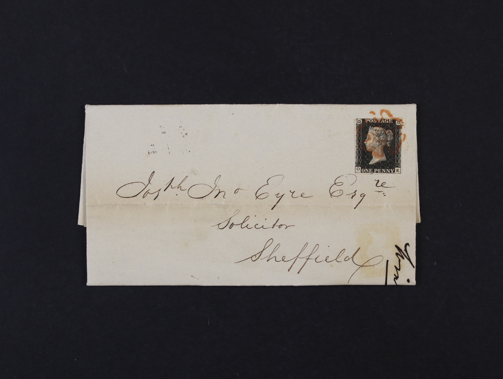 skl. dopis frank. zn. Mi. č. 1 písmena O - E, znehodnoc. červeným raz. Maltézský kříž, datace v textu 18.JU.1840 (rané datum)