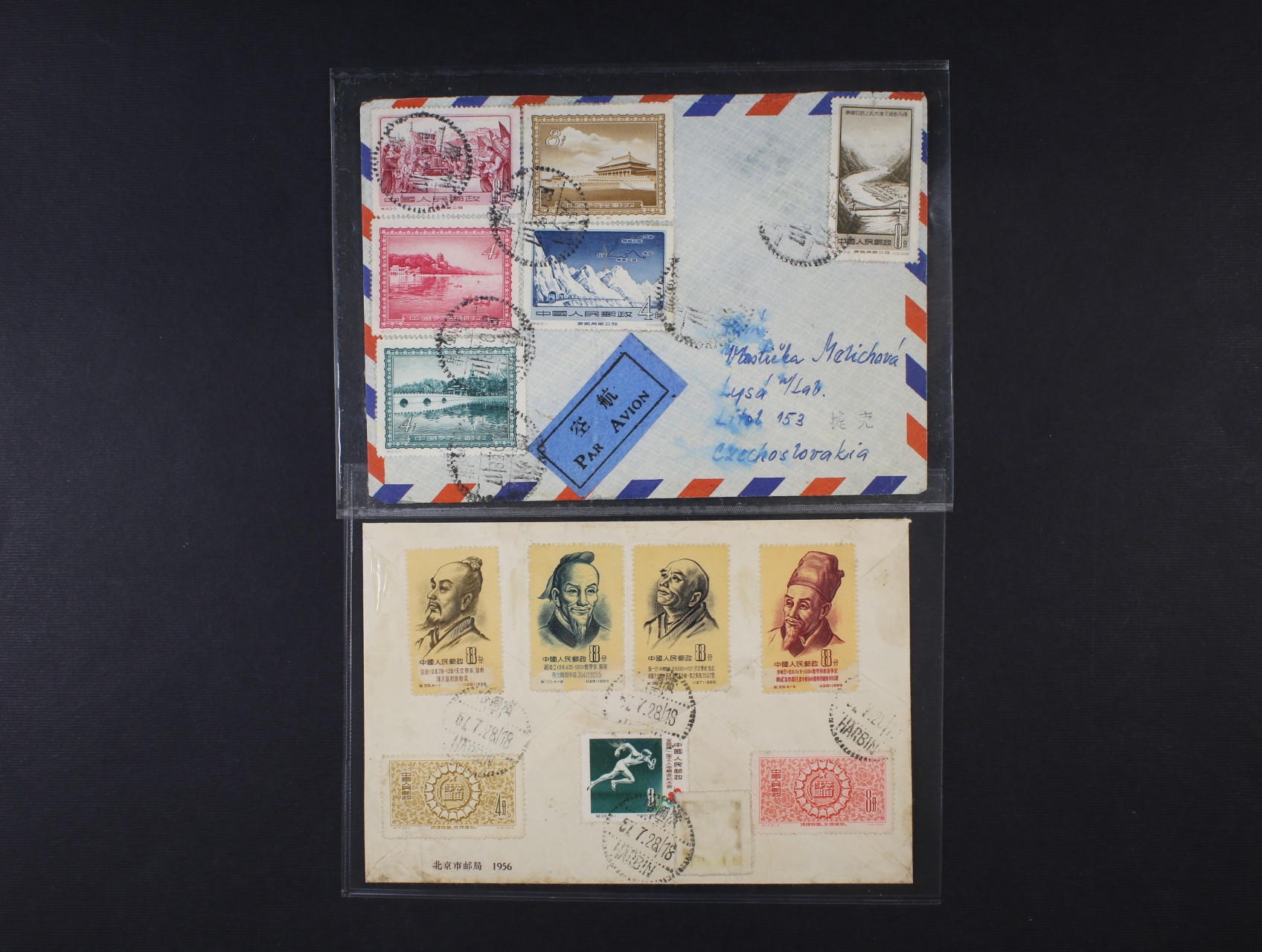 Čína - FDC frank. zn. Mi. č. 532 - 3, FDC frank. zn. Mi. č. 1927 - 32, dvě celistvosti do ČR frank. zn. Mi. č. 2414 -15, 2543-4, celinová obálka s námětem růže