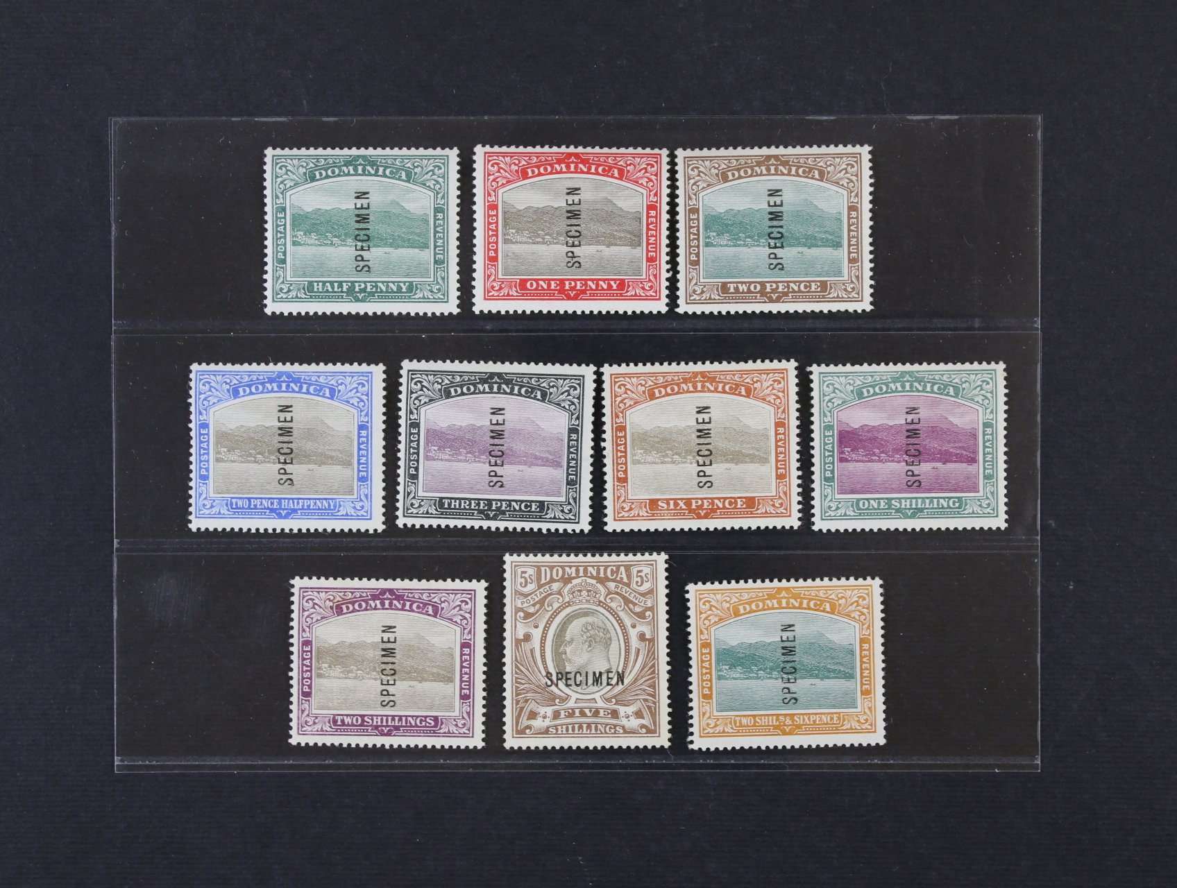 Dominica 1903 - zn. SG. č. 27s-36s, KRAJINKY , 1P - 5Sh s přetiskem SPECIMEN; bezvadná série, kat. 200 GBP