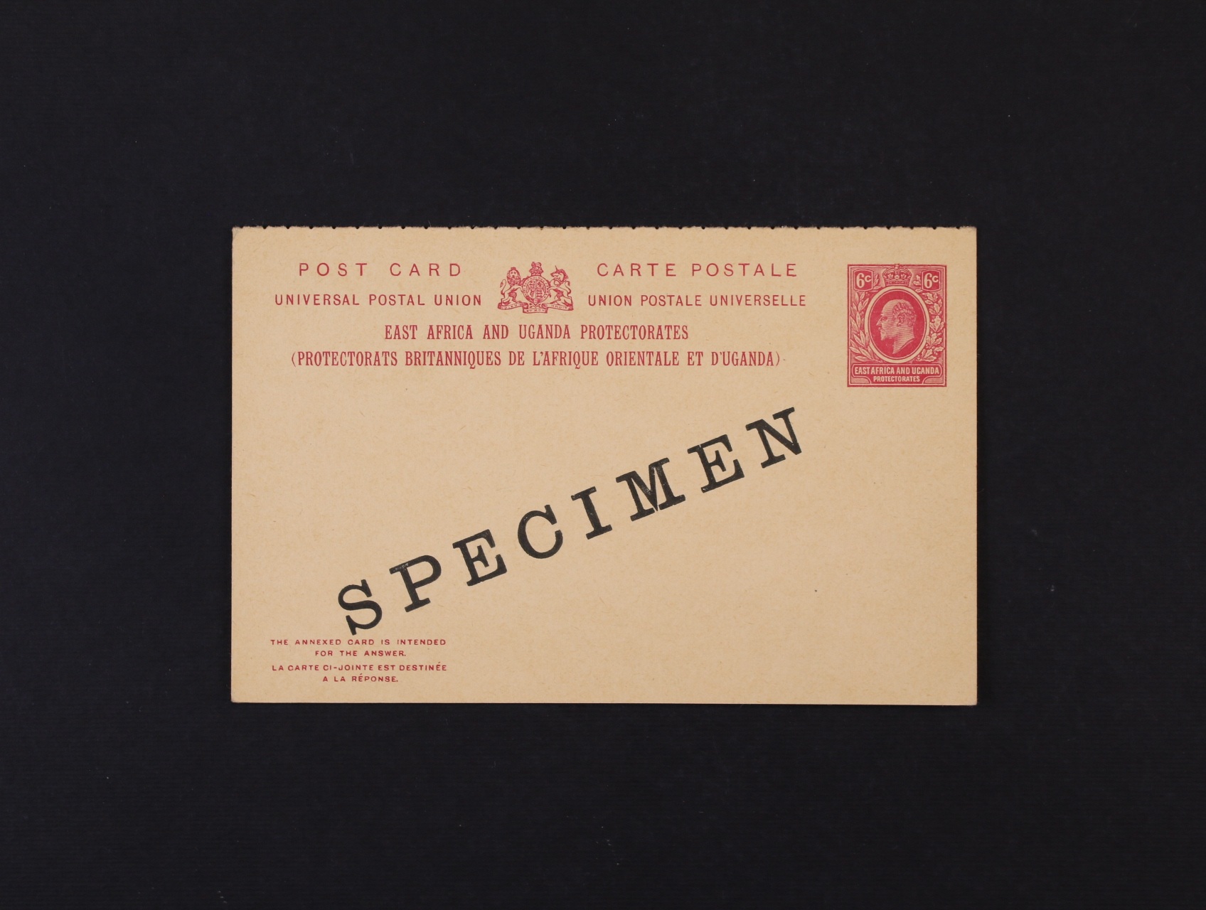East Africa & Uganda Protectorates - dvoudílná celina s natištěnou zn. 6c a na obou dílech s přítiskem SPECIMEN, zajímavé, vzácné