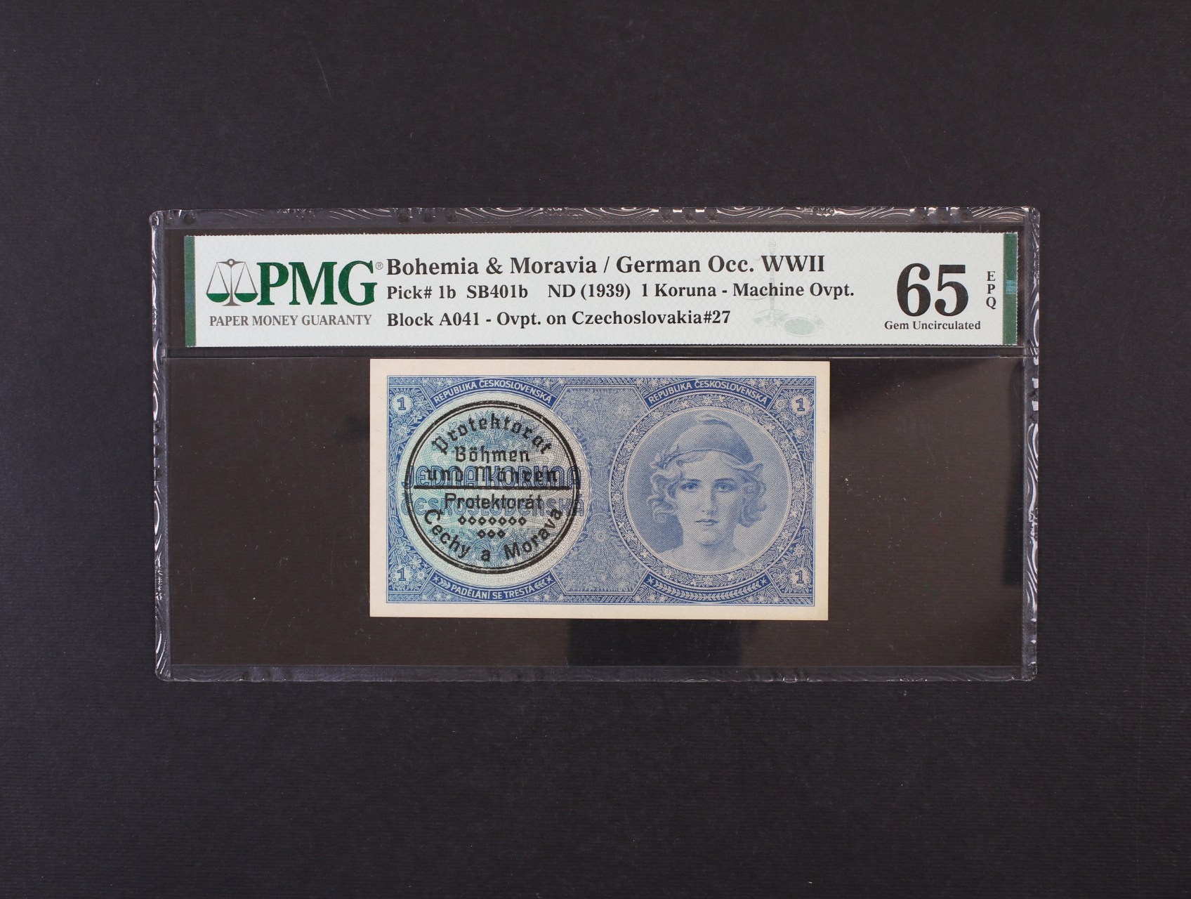 • 1 K 1938/40 se strojním raz. A 041, Ba. 28b, Pi. 1b, PMG 65