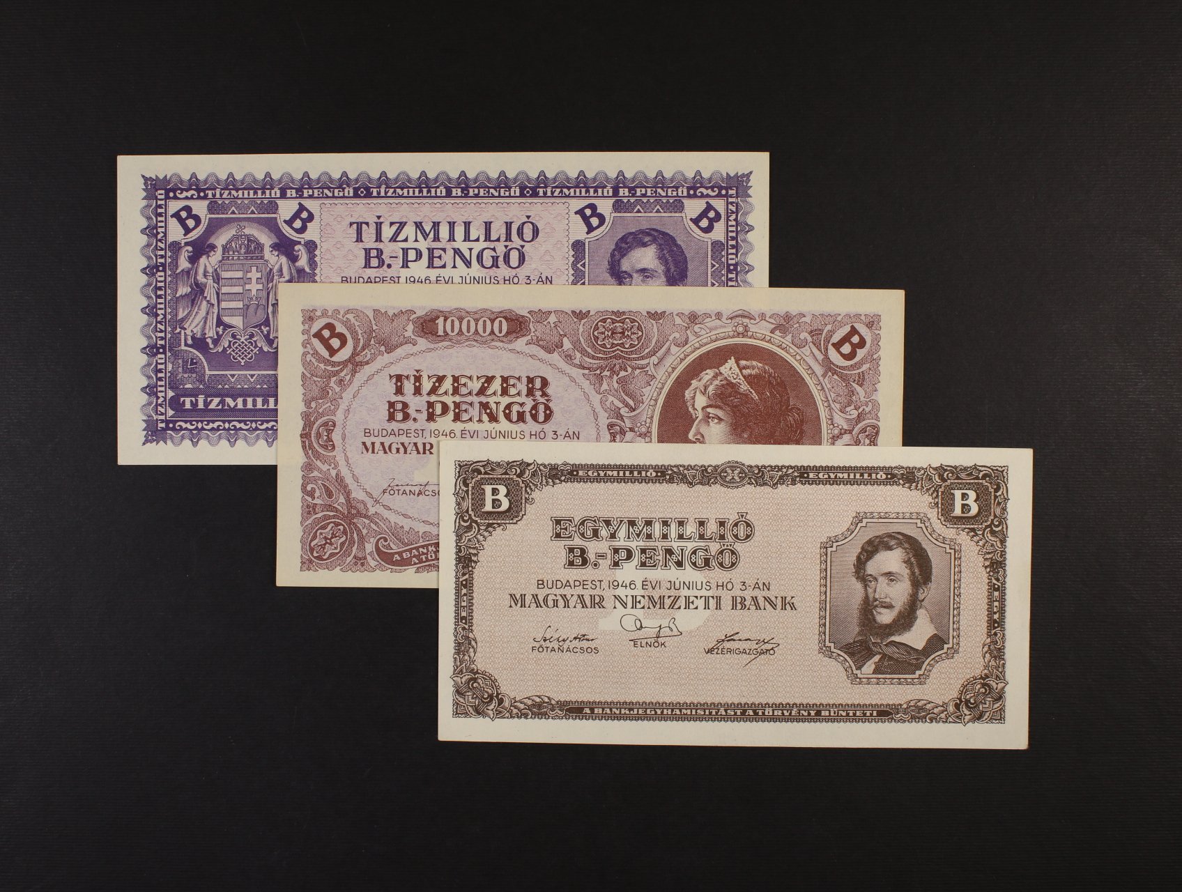 • 10.000 B.-Pengö, 1.000.000 B.-Pengö, 10.000.000 3.6.1946, Pi. 132, 134, 135