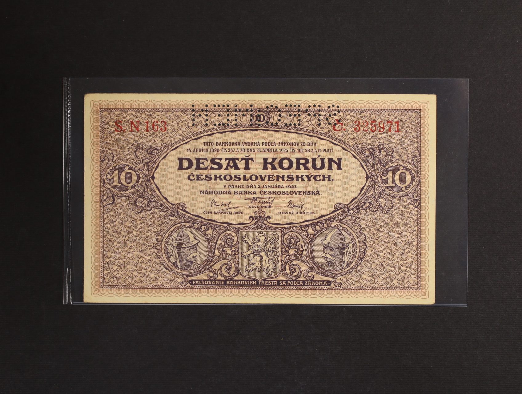 10 Kč 2.1.1927 série N 163 s perf. SPECIMEN z rubu, Ba. 22e, Pi. 20s, He. 22 bS3