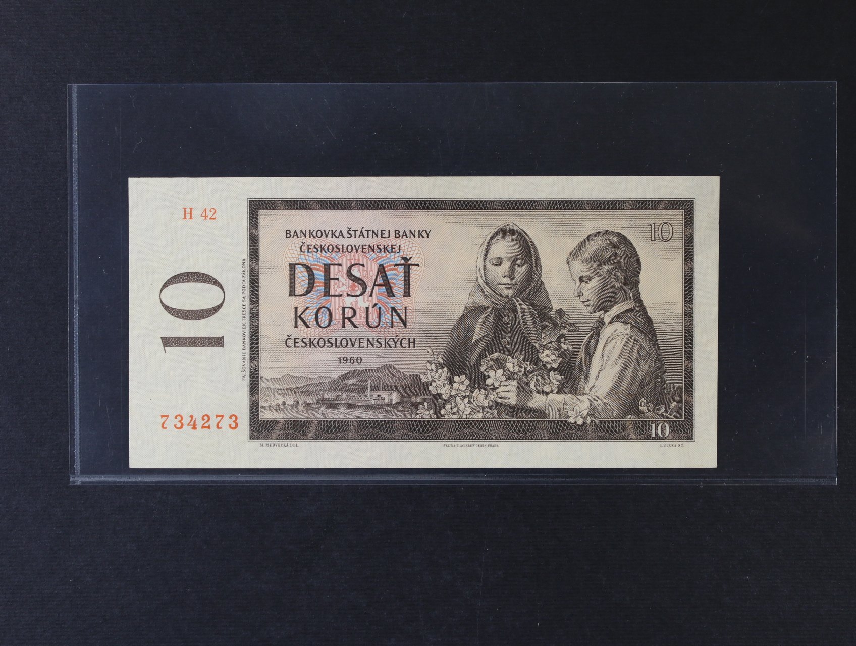 • 10 Kčs 1960 série H 42, vodoznaková výztuž na rubu, Ba. 94a1, Pi. 88a