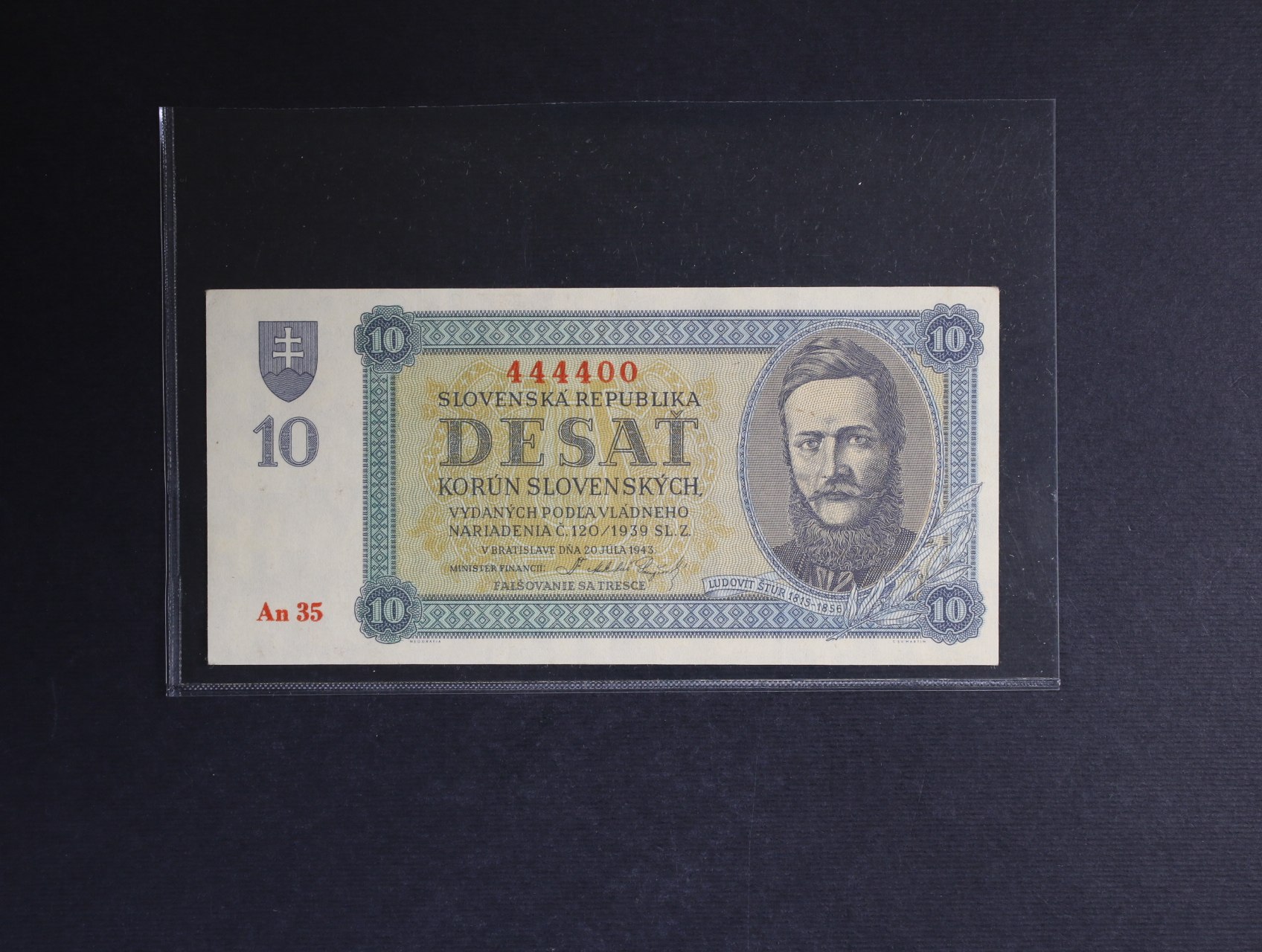 • 10 Ks 20.7.1943 série An 35 444400, Ba. 54b, Pi. 6a
