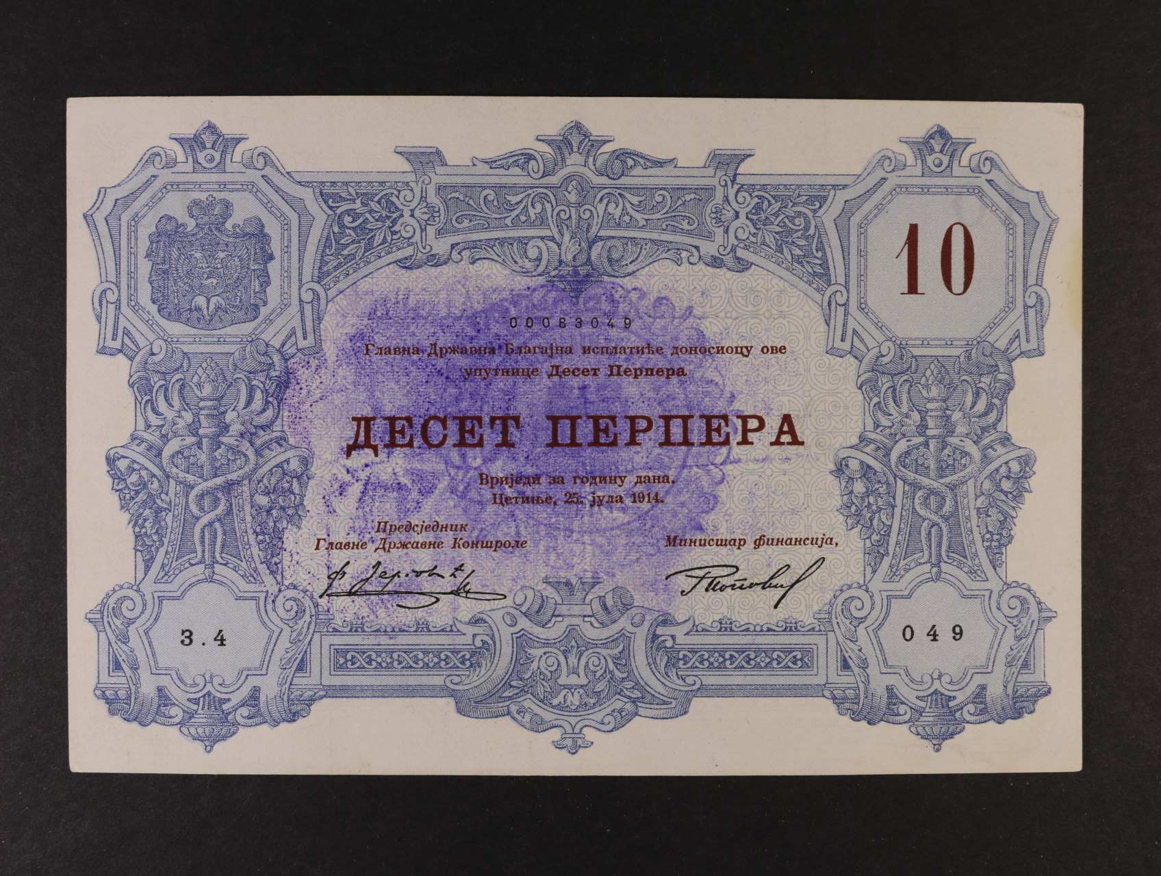 10 Perpera 25.7.1914 s fialovým raz. "CETINJE", Pi. 18