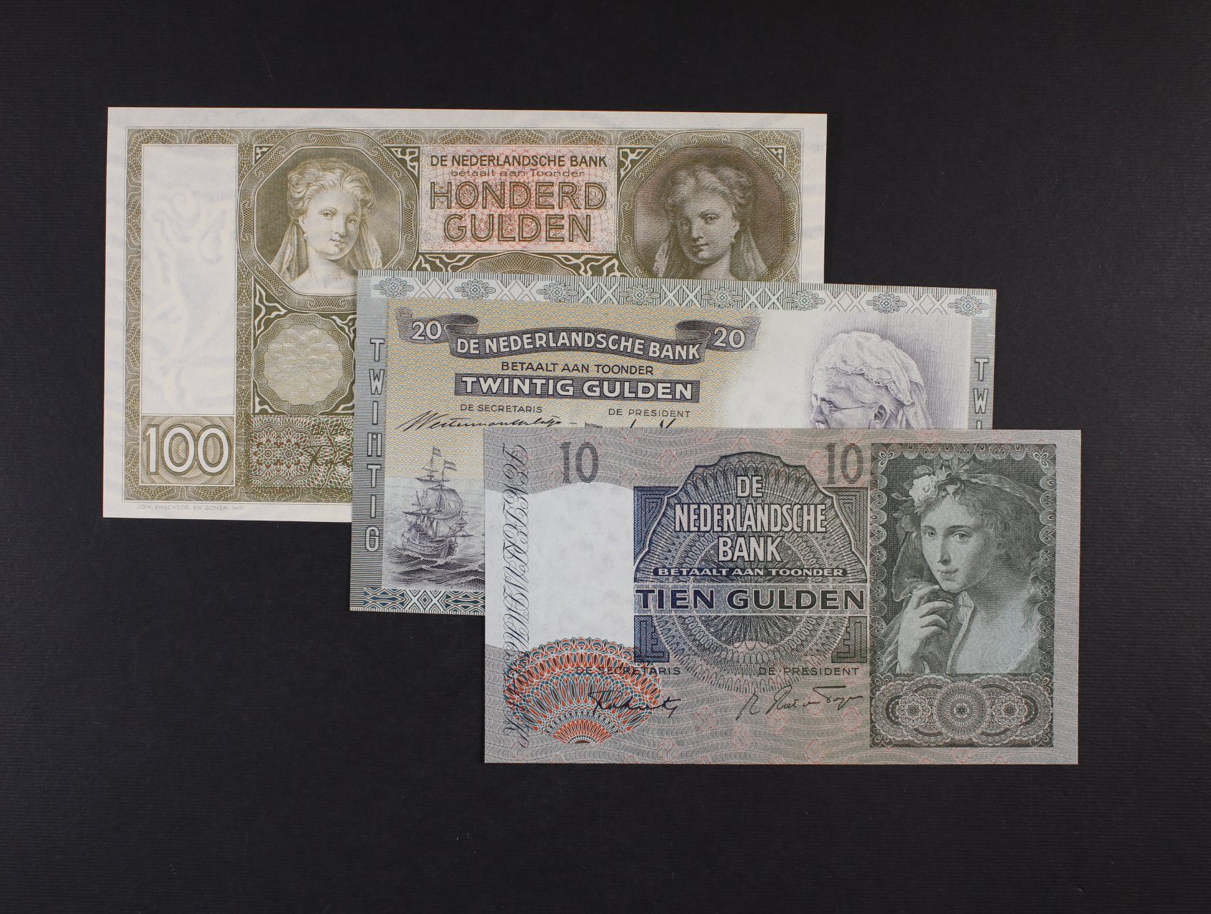 • 100 Gulden 1944, 20 Gulden 1941, 10 Gulden 1942, Pi. 51b, 54, 56b, 3 kusy