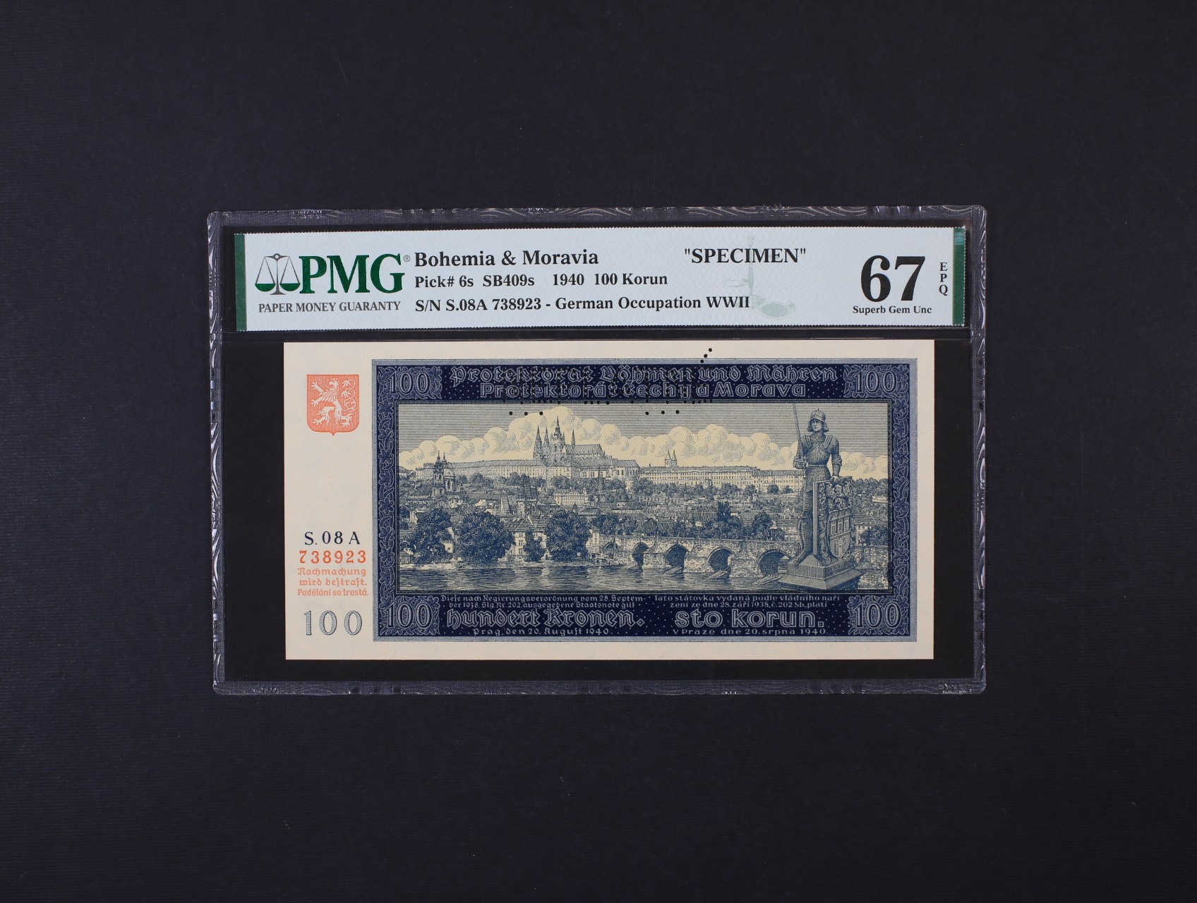 100 K 20.8.1940 I.vydání série 08 A s perf. NEPLATNÉ, Ba. 32, Pi. 6s, PMG 67
