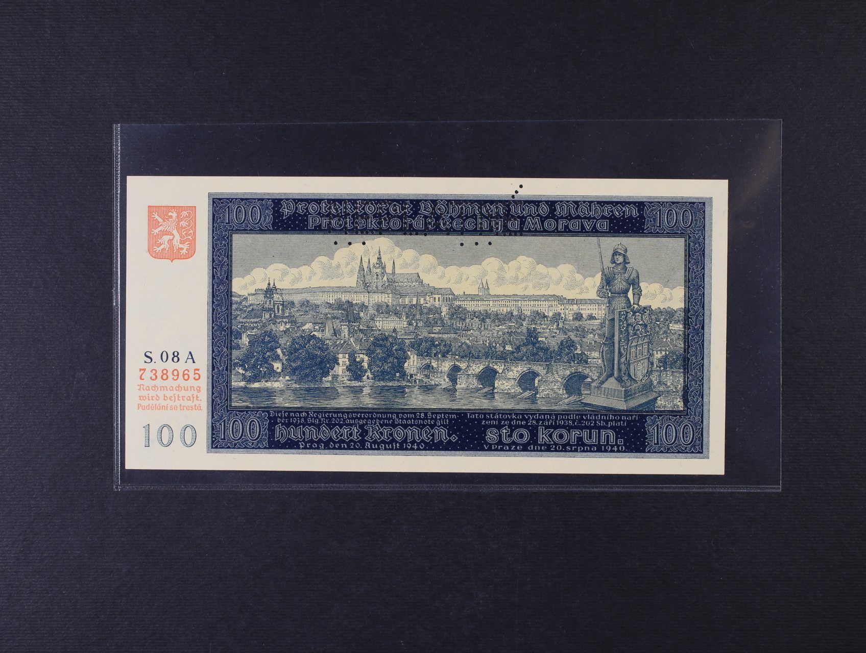 100 K 20.8.1940 I.vydání série 08 A s perf. NEPLATNÉ, Ba. 32, Pi. 6s, He. 32 aS2