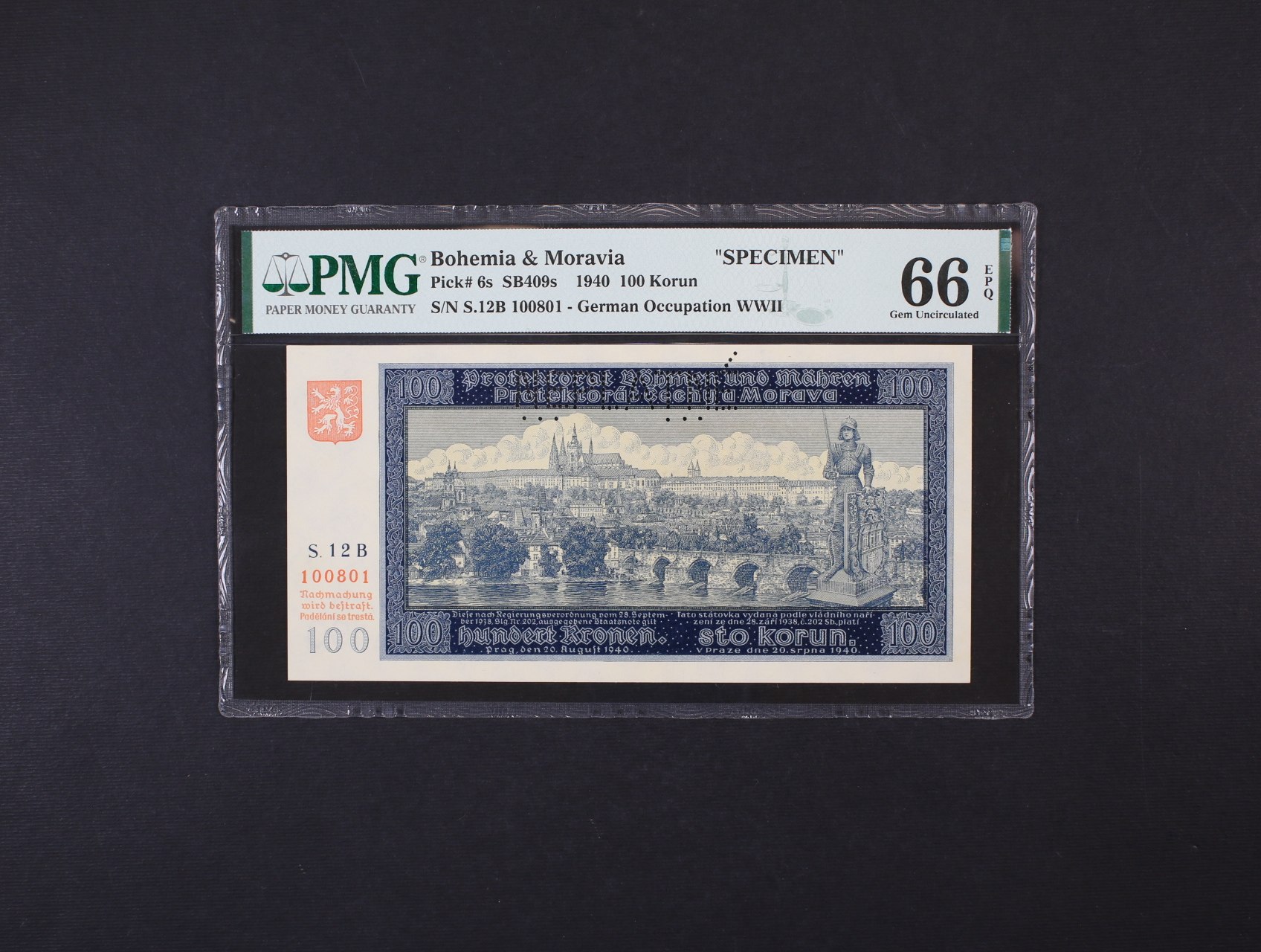 100 K 20.8.1940 I.vydání série 12 B s perf. NEPLATNÉ, Ba. 32, Pi. 6s, PMG 66
