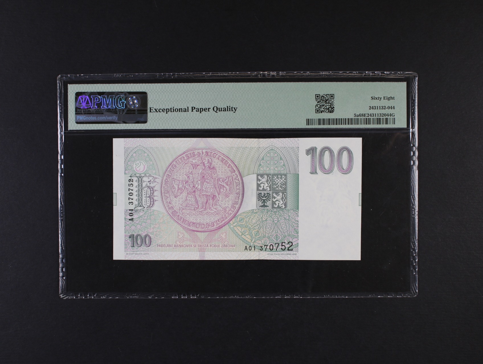 100 Kč 1993 série A 01, Ba. CZ 5, Pi. 5a, PMG 68, první série
