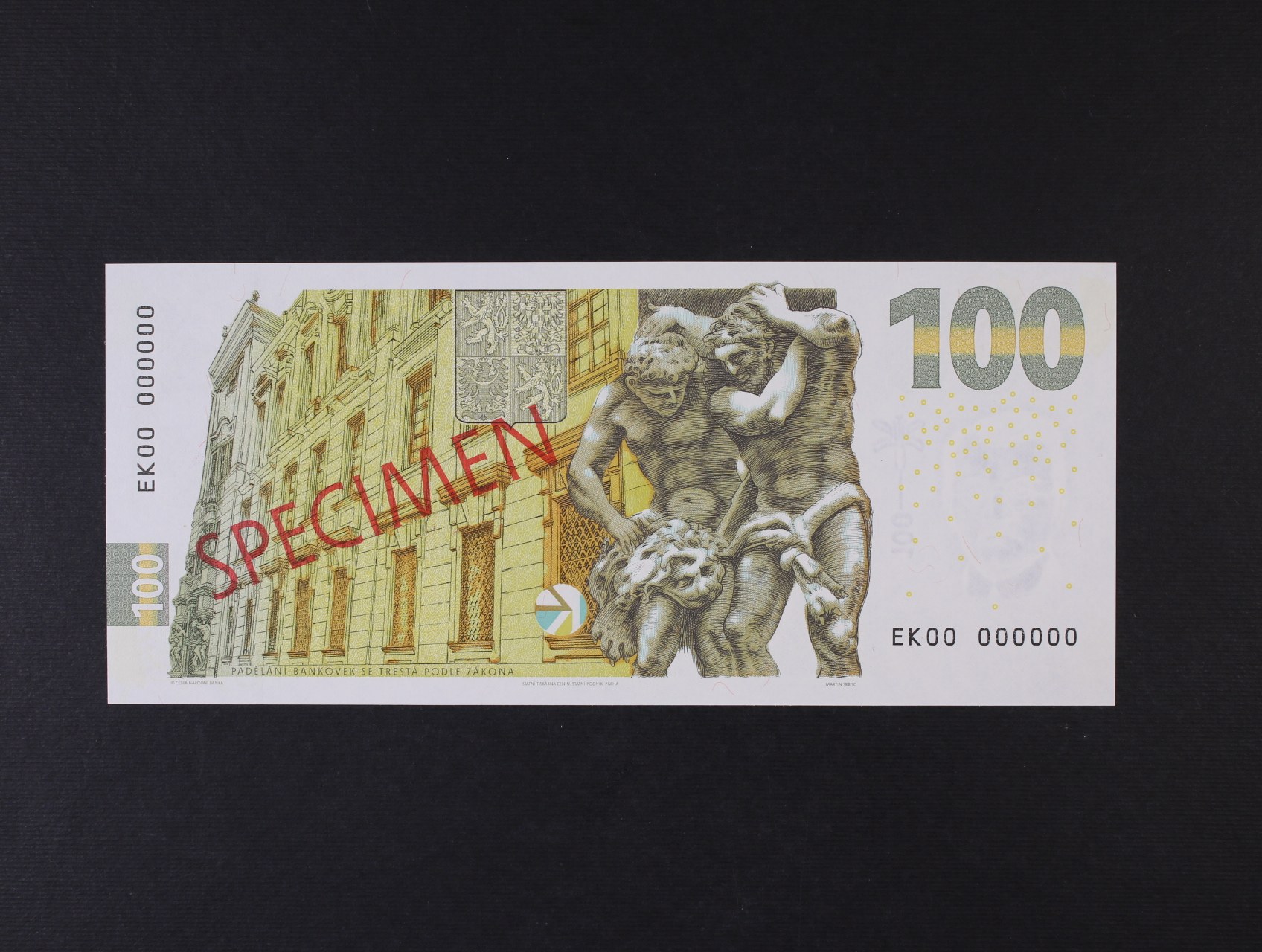 • 100 Kč 2022 série EK 00 000000 anulát s červeným přetiskem SPECIMEN na A i R, pamětní 100 Kč s portrétem Karla Engliše, Ba. CZ 31s, He. CZ 35 V1
