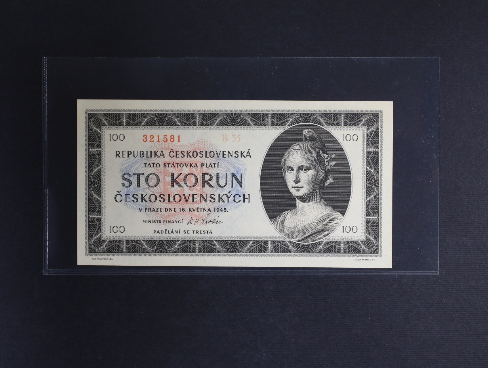 • 100 Kčs 16.5.1945 série B 35, Ba. 77a1, Pi. 67a