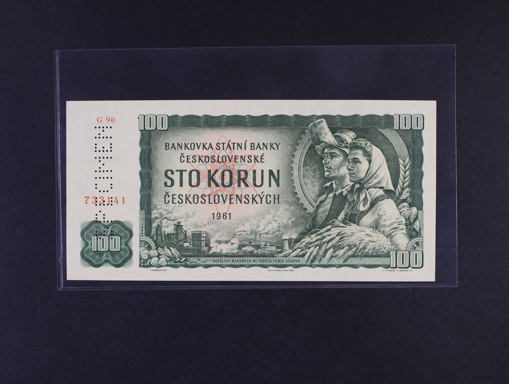 • 100 Kčs 1961 série G 90 bankovní vzor s perf. SPECIMEN, Ba. 98Ab1, Pi. 91s, He. 102b V3