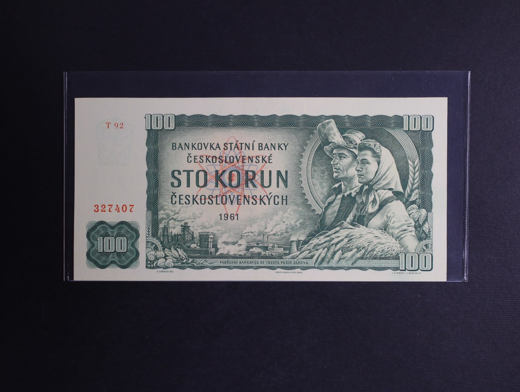 100 Kčs 1961 série T 92, Ba. 98b2, Pi. 91