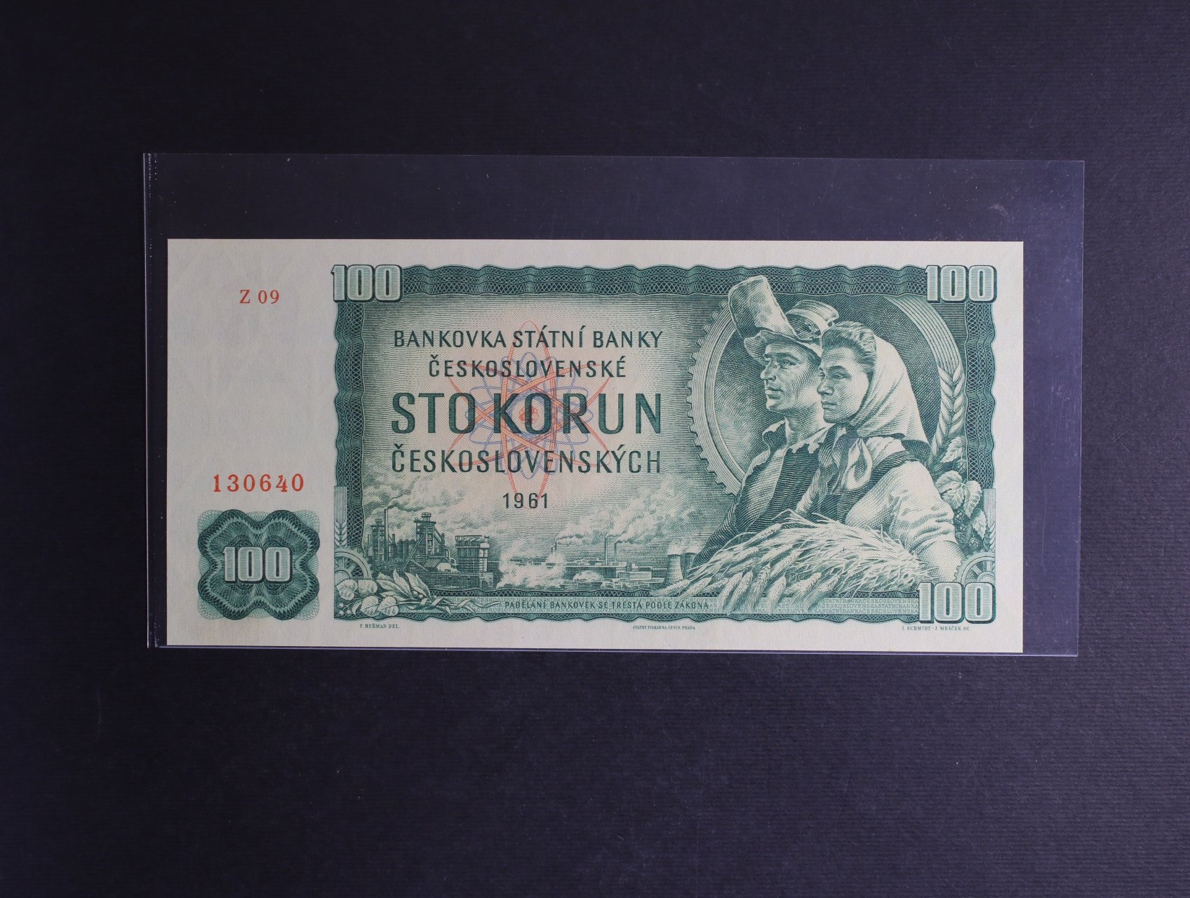 • 100 Kčs 1961 série Z 09, vodoznaková výztuž na líci bankovky, Ba. 98b2, Pi. 91