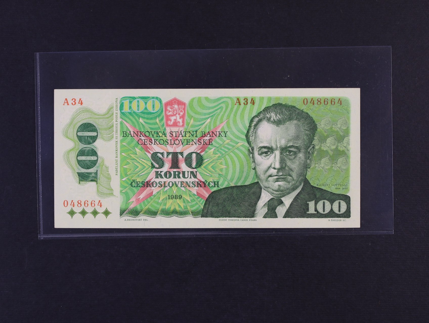 • 100 Kčs 1989 série A 34, Ba. 106, Pi. 97, vzácně se vyskytující vysoká série