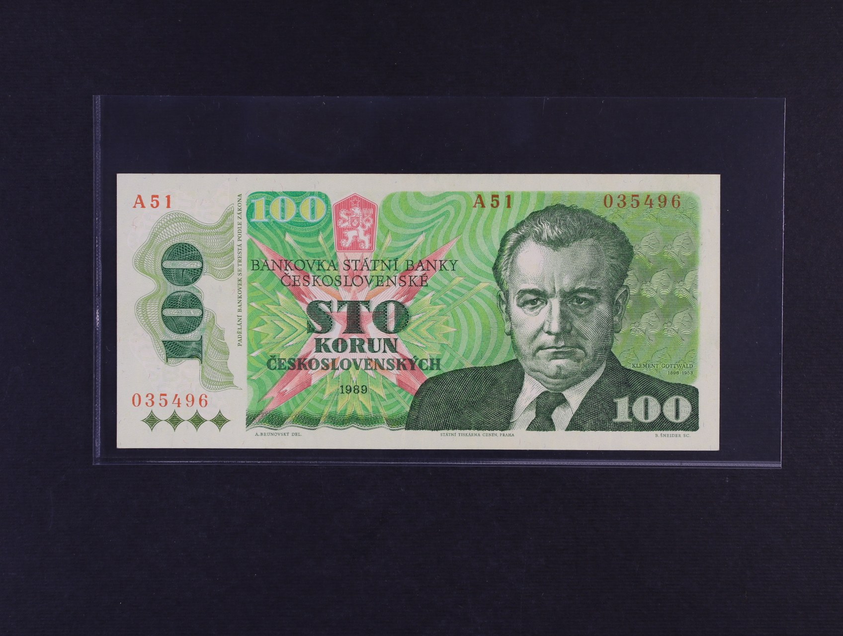 • 100 Kčs 1989 série A 51, Ba. 106, Pi. 97, vzácně se vyskytující vysoká série