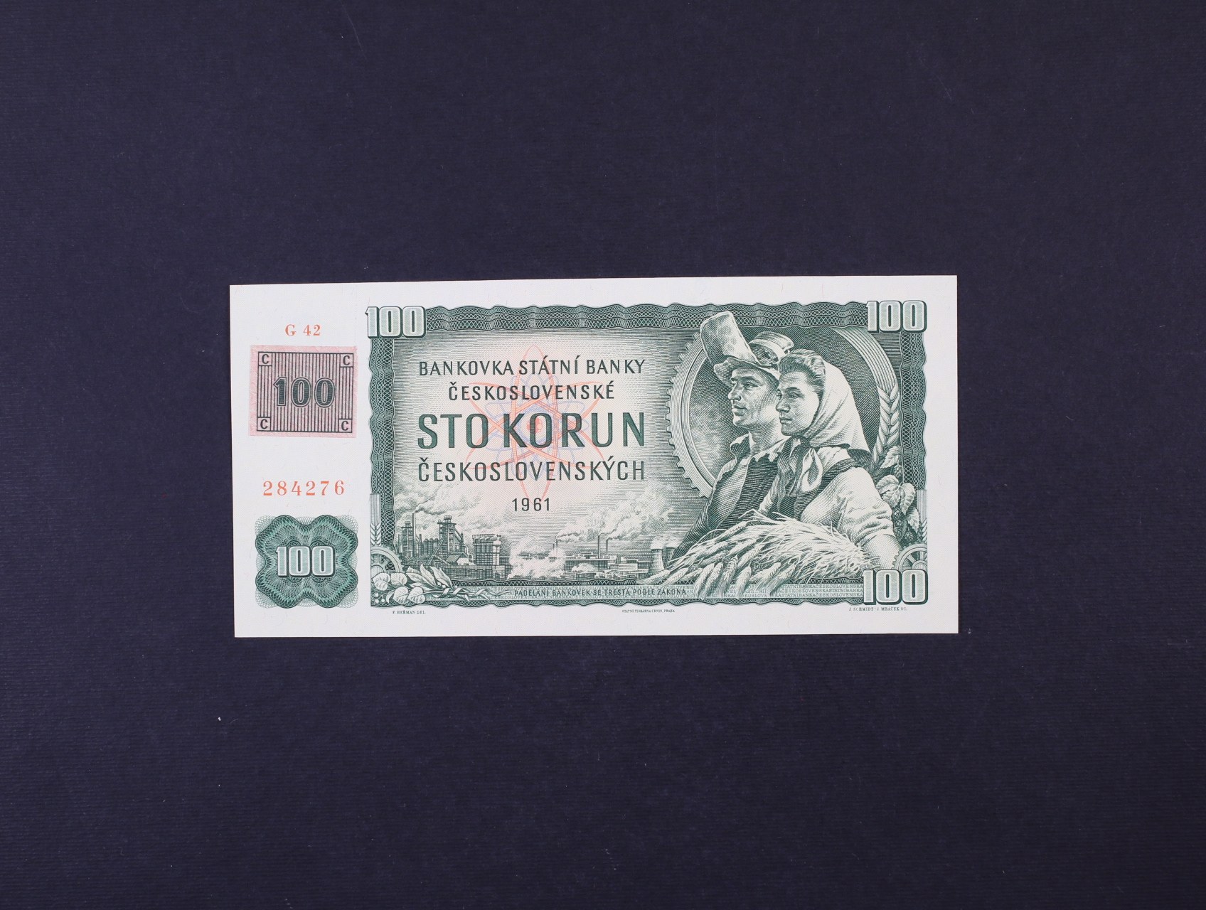 100 Kčs/Kč 1961/93 série G 42 kolkovaná, číslovač 2d, Ba. CZ 1Aa, Pi. 1