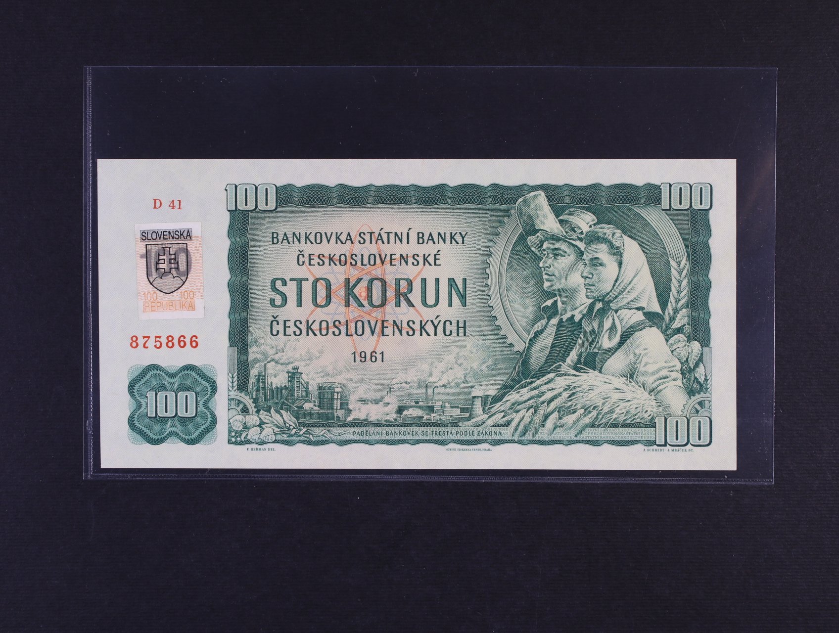 • 100 Sk/Kčs 1961/93 série D 41 kolkovaná, náhradní série, Ba. SK 3a2, Pi. 17, He. SK 3b2