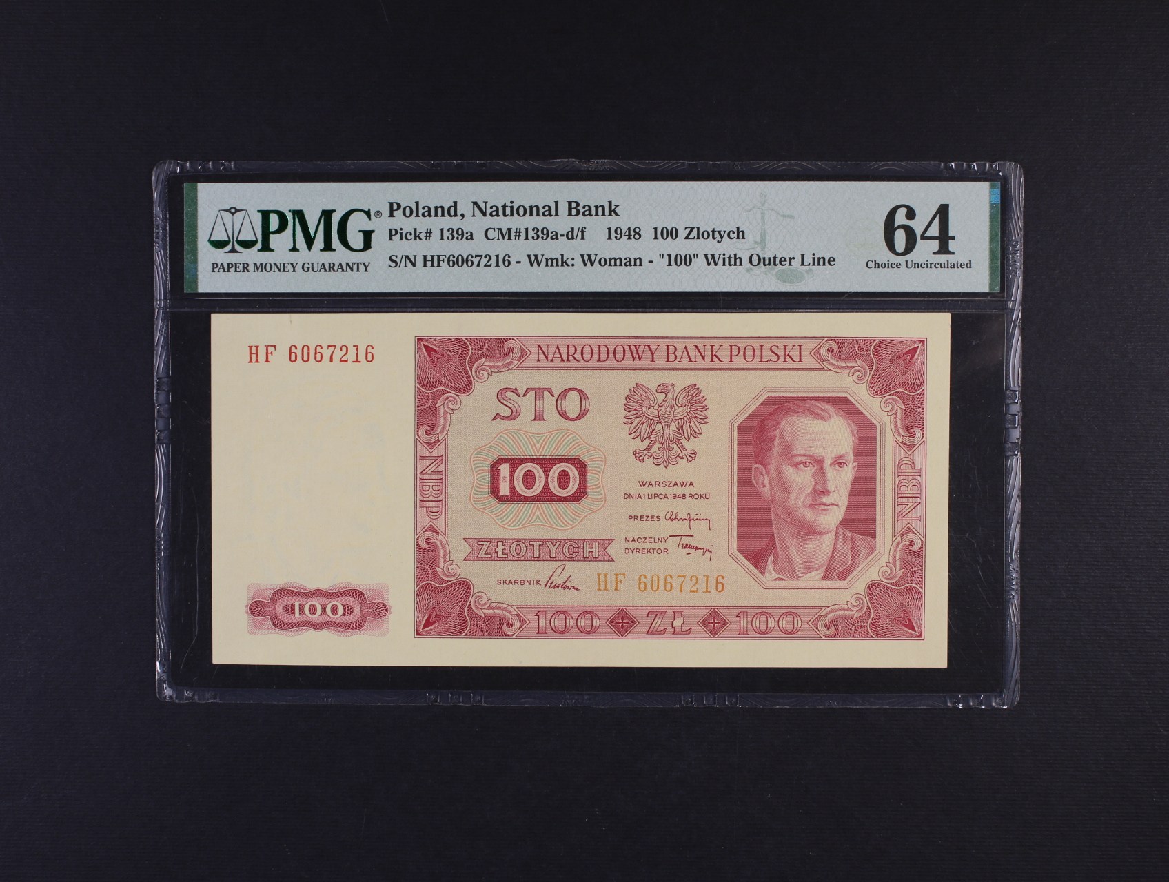 100 Zlotych 1948 série HF, Pi. 139a, BNB. B829b, Mil.139f, PMG 64