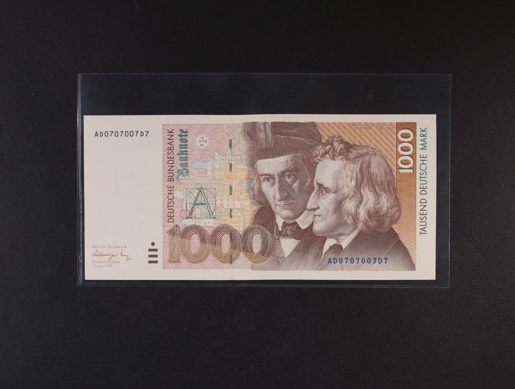 1000 DM 1.8.1991 série AD0707007D7A, Ro. 302, Pi. 44a, Grab. BRD-46a